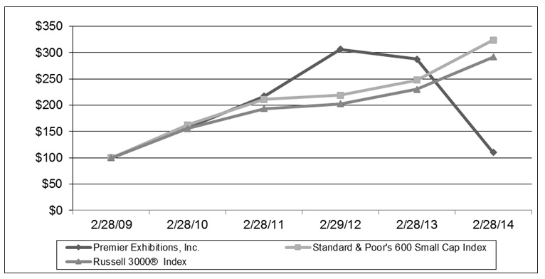 The following graph compares the yearly changes in cumulative total shareholder return on shares of our common stock with the cumulative total return of the Standard & Poor's 600 Small Cap Index and the Russell 3000® Index. In each case, we assumed an initial investment of $100 on February 28, 2009. Each subsequent date on the chart represents the last day of the indicated fiscal year. Total returns assume the reinvestment of all dividends. Our stock performance may not continue into the future with the trends similar to those depicted in this graph. We neither make nor endorse any predictions as to our future stock performance.