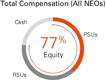 We provide severance and change of control protections to our named executive officers through a severance policy and agreements which are discussed below under the heading “Agreements with Executive Officers.” Under our severance policy, the cash severance payment upon a termination without cause is equal to 1.5 times base salary plus the target cash incentive award for the year of termination. In addition, all restricted stock units and stock options and the performance share units are subject to double trigger vesting following a change of control.