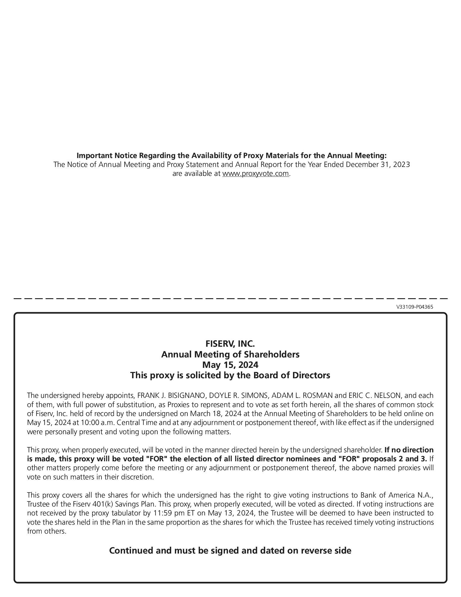 The performance share units granted in 2021, with a three-year performance period ended on December 31, 2023, vested at 140.3% of the target award level based on organic revenue growth of 190% of target (30% weighting), average adjusted operating income growth of 142% of target (25% weighting), average adjusted earnings per share growth of 163% of target (15% weighting), in each case, over the three-year period ended December 31, 2023, as well as our total shareholder return versus the S&P 500 Index over the three-year period of 77% of target (30% weighting). Upon vesting and subject to required tax withholding, Messrs. Bisignano, Chiarello and Hau received 108,423, 26,996, and 18,155 shares of our common stock, respectively, with delivery made following the certification of these performance goals by the talent and compensation committee on January 29, 2024.