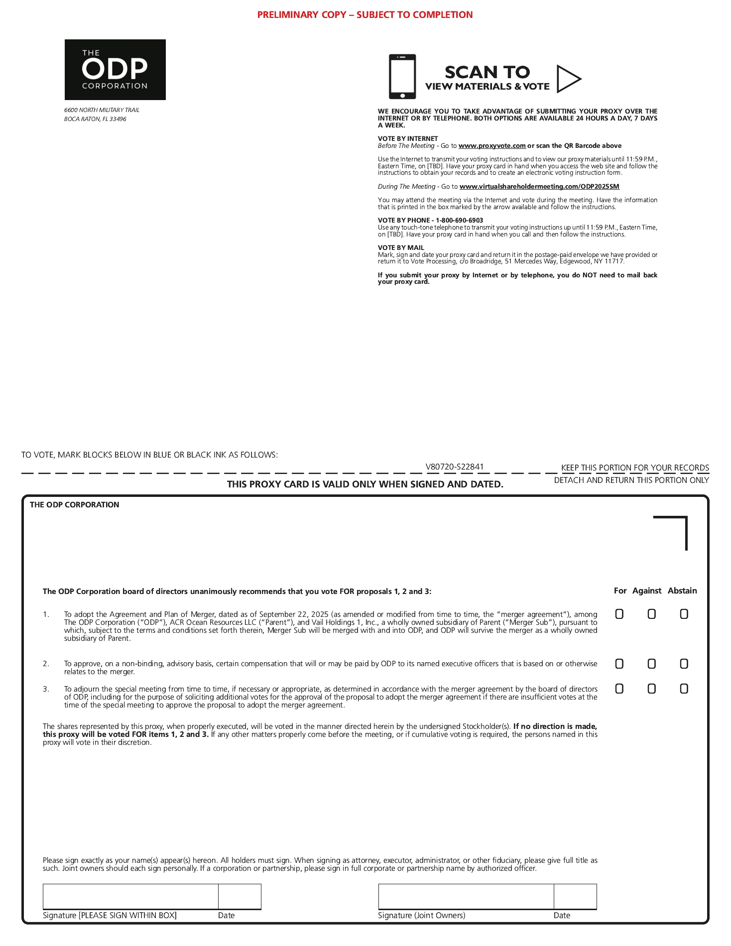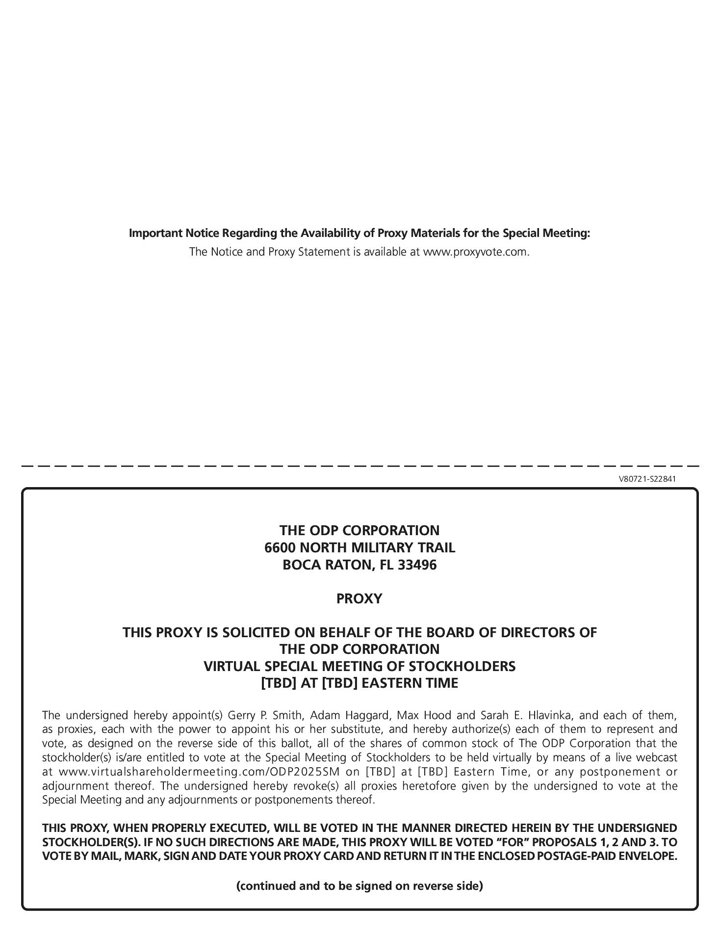 of the contemplated transactions, so as to enable the parties to the merger agreement to close the contemplated transactions as expeditiously as practicable (but in no event later than the end date), including (i) the defense through litigation on the merits of any claim asserted in any court, agency or other proceeding by any person or entity (including any governmental entity) seeking to delay, restrain, prevent, enjoin or otherwise prohibit consummation of the transactions contemplated by the merger agreement and (ii) (A) proposing, negotiating, committing to, agreeing to and effecting, by consent decree, hold separate orders or otherwise, the sale, lease, divestiture, disposition or license (or holding separate pending such disposition) of any assets, operations, rights, product lines, licenses, properties, products, rights, services or businesses of Parent or any member of the Parent group, or ODP or its subsidiaries or any interest therein, (B) otherwise taking or committing or agreeing to restrictions or actions that, after the effective time, would limit Parent’s, any member of the Parent group’s or ODP’s or its subsidiaries’ freedom of action or operations with respect to, or its or their ability to retain, any assets, operations, rights, product lines, licenses, properties, products, services or businesses of Parent, the Parent group or ODP or its subsidiaries or any interest or interests therein, (C) restricting, limiting or eliminating any governance rights (including voting power, consent rights, board of directors nomination or designation rights, board observer rights and ownership or equity interests) with respect to Parent or its affiliates (including ODP) and their respective subsidiaries or (D) agreeing to enter into, modify or terminate existing contractual relationships, contractual rights or contractual obligations, and promptly effecting the sale, lease, license, divestiture, disposal and holding separate of, assets, operations, rights, product lines, licenses, properties, products, services or businesses of Parent, the Parent group, or ODP or its subsidiaries or any interest or interests therein and the entry into agreements with, and submission to orders of, the relevant governmental entity giving effect thereto or to such restrictions or actions (such sale, lease, license, divestiture, disposal and holding separate or other action described in clause (ii), a “regulatory remedy”). The foregoing shall not require ODP to effectuate or agree to effectuate any regulatory remedy unless such regulatory remedy is conditioned upon the closing of the merger and only effective following the closing of the merger. Notwithstanding the foregoing or any other provision of the merger agreement, the Parent group (as defined in the merger agreement) shall not be required to agree to any regulatory remedy with respect to (x) any affiliate (other than the “ultimate parent entity” of Parent (as such term is defined in C.F.R. 801.1(a)(3)) and any subsidiary of Parent) and, subject to clause (y) of this paragraph, each entity “controlled” by such “ultimate parent entity” (as such term is defined in 16 C.F.R. 801.1(a)(3)) or (y) any portfolio company (other than with respect to ODP and its subsidiaries).