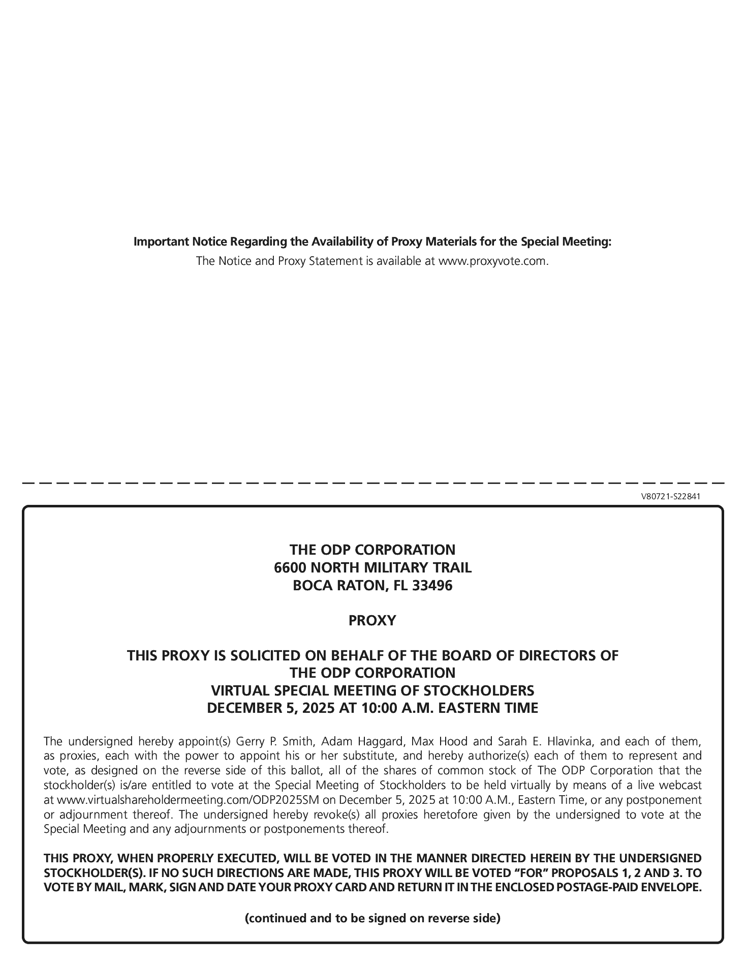 The accompanying proxy statement is dated October 27, 2025 and, together with the enclosed form of proxy card, is first being mailed to ODP stockholders on or about October 27, 2025.