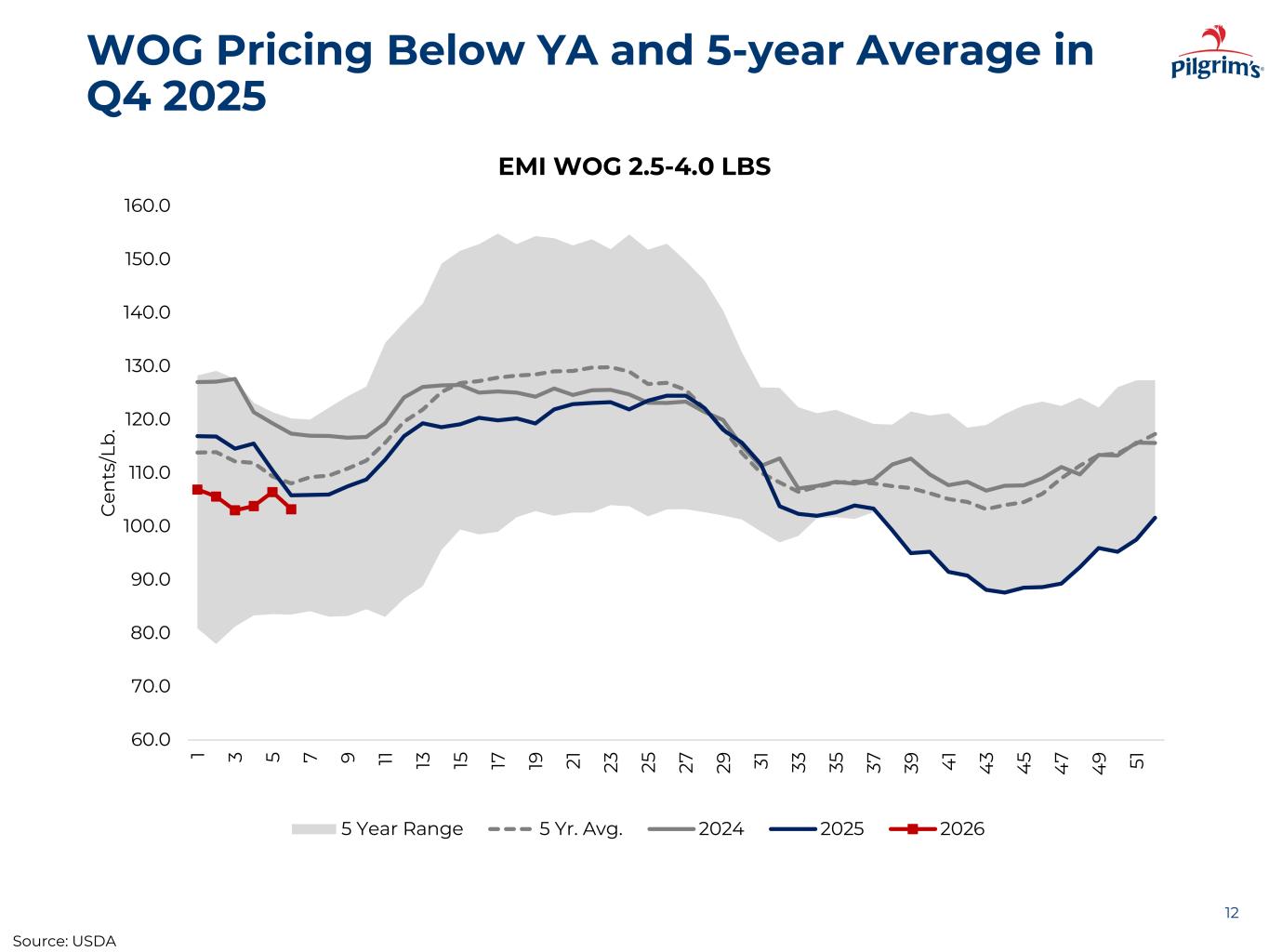WOG Pricing Below YA and 5-year Average in Q4 2025 12 60.0 70.0 80.0 90.0 100.0 110.0 120.0 130.0 140.0 150.0 160.0 1 3 5 7 9 11 13 15 17 19 21 23 25 27 29 31 33 35 37 39 4 1 4 3 4 5 4 7 4 9 51 C en ts /L b . EMI WOG 2.5-4.0 LBS 5 Year Range 5 Yr. Avg. 2024 2025 2026 Source: USDA