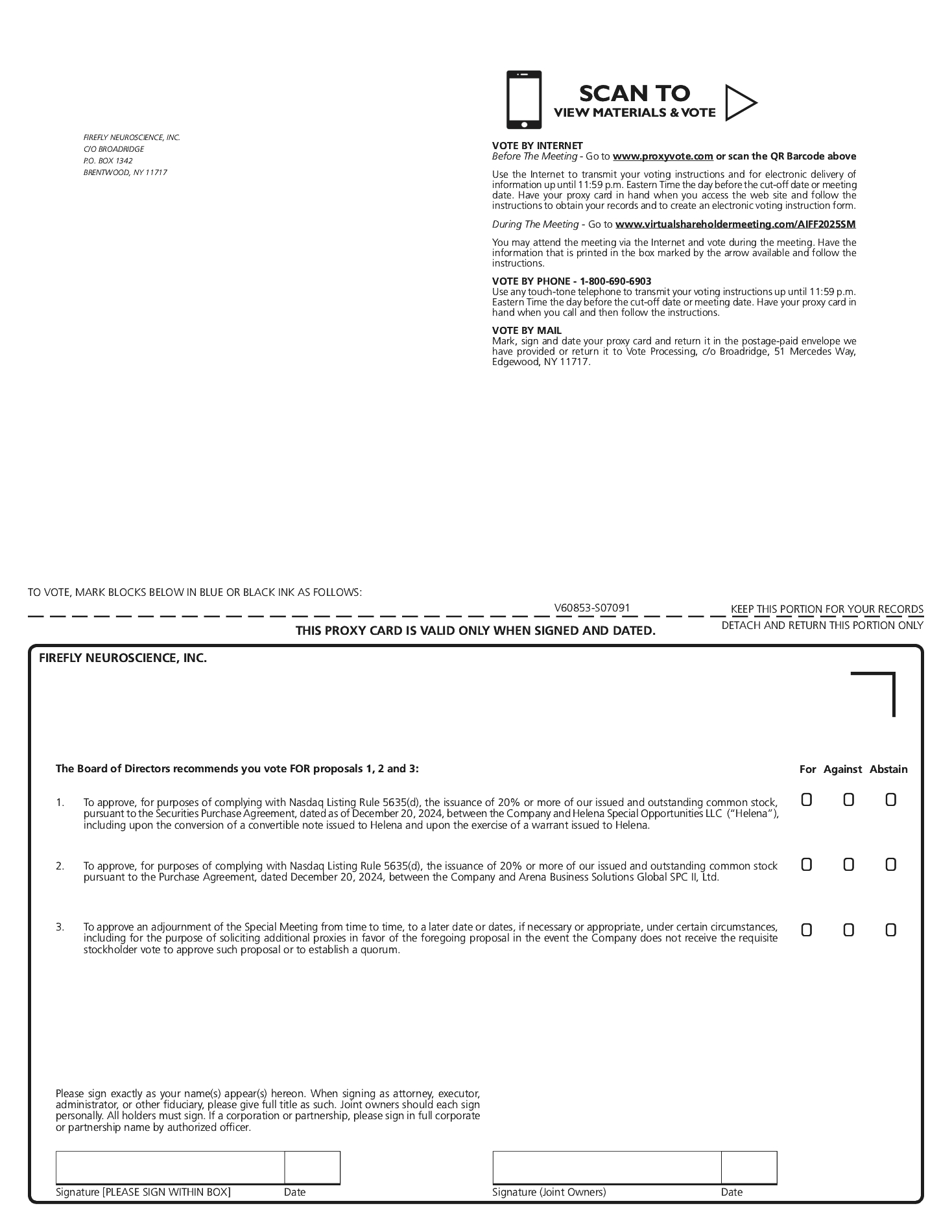 This SECURITY AGREEMENT, dated as of December 20, 2024 (this “Agreement”), is among FIREFLY NEUROSCIENCE, INC., a Delaware corporation (the “Company”), those Subsidiaries of the Company signatory hereto (such subsidiaries, the “Guarantors” and together with the Company, the “Debtors”) and the holders of the Company’s convertible promissory notes (collectively, the “Notes”) signatory hereto, their endorsees, transferees and assigns (collectively, the “Secured Parties”).
