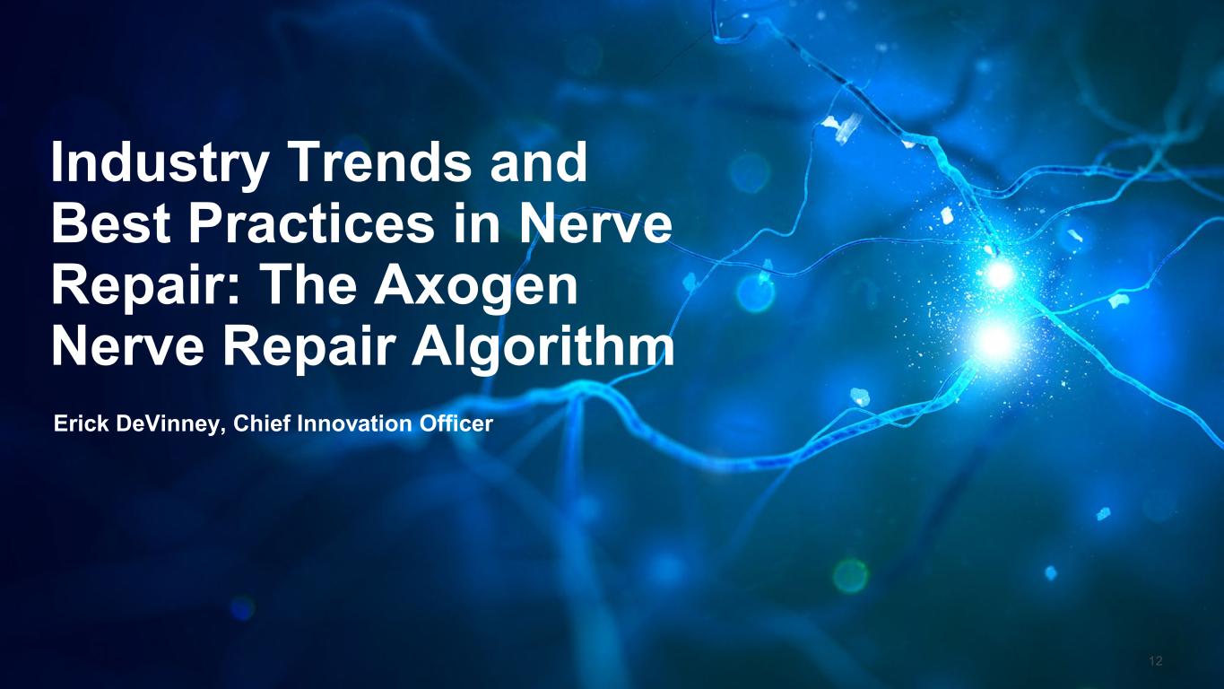 Industry Trends and  Best Practices in Nerve  Repair: The Axogen Nerve Repair Algorithm Erick DeVinney, Chief Innovation Officer 12