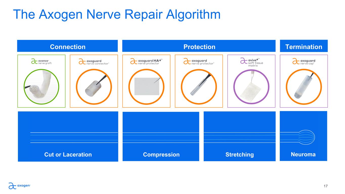 The Axogen Nerve Repair Algorithm 17 Connection Protection Termination Cut or Laceration Compression Stretching Neuroma