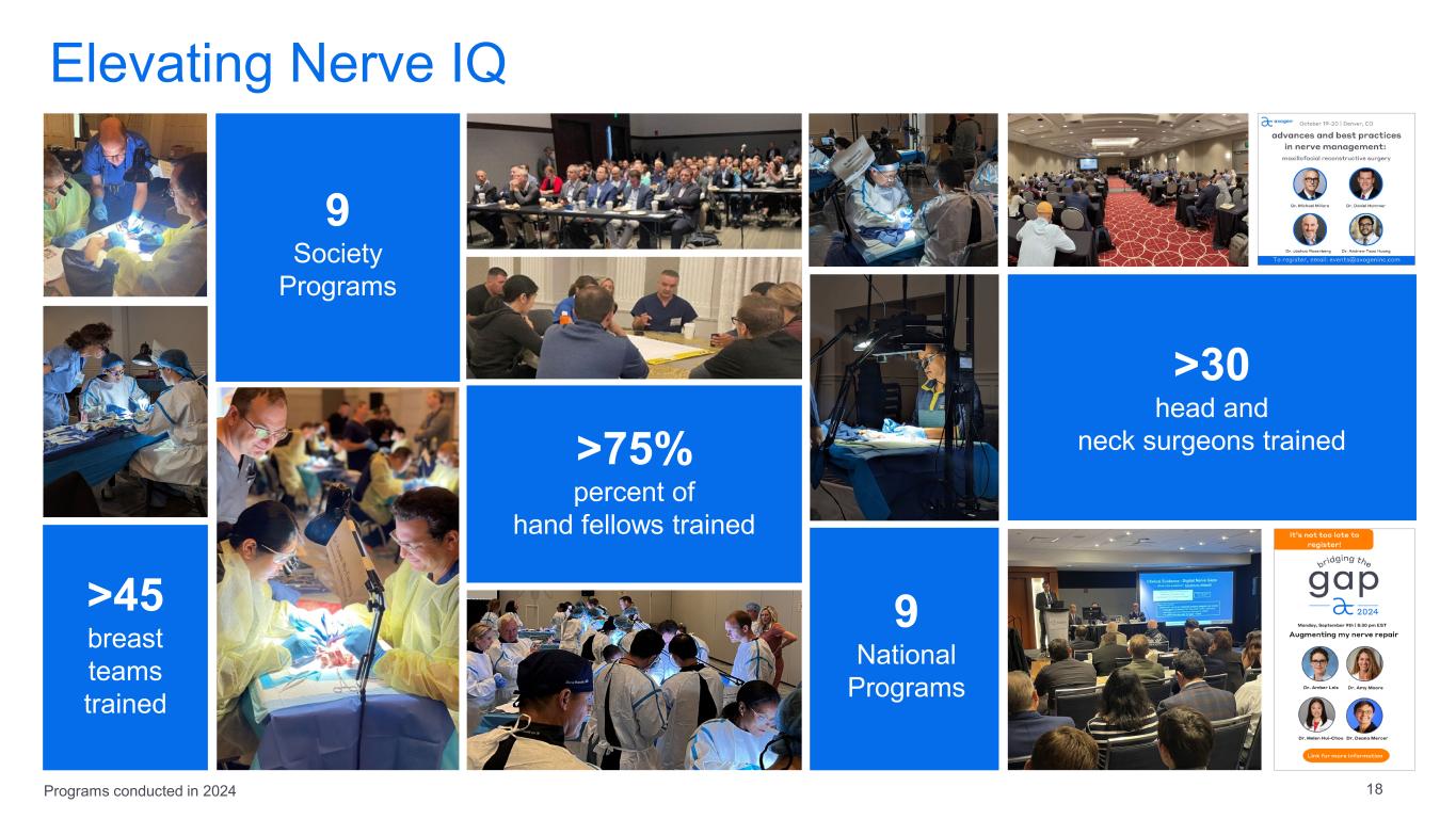 Elevating Nerve IQ 9 Society  Programs >75% percent of  hand fellows trained >30 head and  neck surgeons trained >45 breast  teams  trained 9 National  Programs Programs conducted in 2024 18