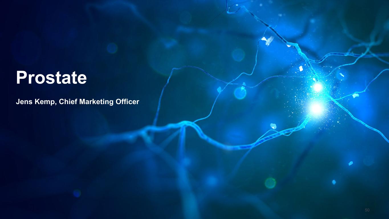 High Disease Prevalence  Prostate cancer incidence is increasing 3% per year and affects  millions of men (1 in 8)16 110,000 robotic-assisted radical prostatectomy procedures are  performed annually in the US, creating a sizable patient population THE MARKET DRIVERS 1 in 8 men will be diagnosed with  prostate cancer in a lifetime16 new cases per year annual radical  prostatectomies  2ND most common cancer  in American men15 ~300,000  ~110,000 robotic assisted  prostatectomies ~90% Motivated Patient Population High patient awareness of the complications from nerve injury  following radical prostatectomy With improved surgical options and reduced complications there  is an opportunity to drive patient demand Substantiation of the Clinical Problem Robust clinical data supports the prevalence and patient quality  of life impact from nerve injury following radical prostatectomy Incontinence and Erectile Dysfunction continue to be quality of  life concerns  52 Prostate