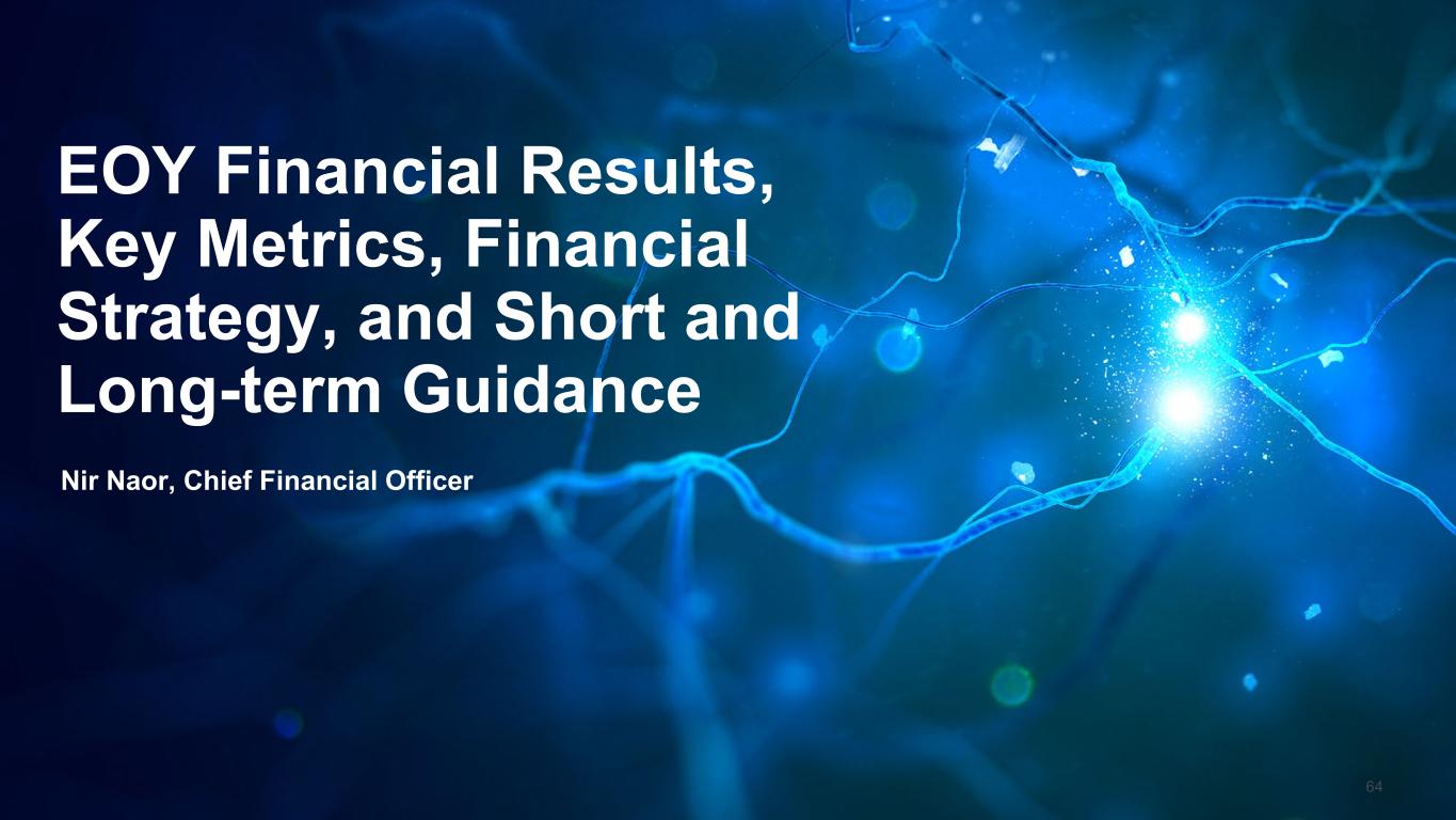 EOY Financial Results,  Key Metrics, Financial  Strategy, and Short and  Long-term Guidance  Nir Naor, Chief Financial Officer 64