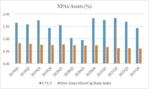 The following table shows total shareholder return (“TSR”) for the Common Stock and the Dow Jones U.S. Micro Cap Banks Index (the “Micro Cap Banks Index”) for the 1, 3 and 5 years ended December 31, 2021: