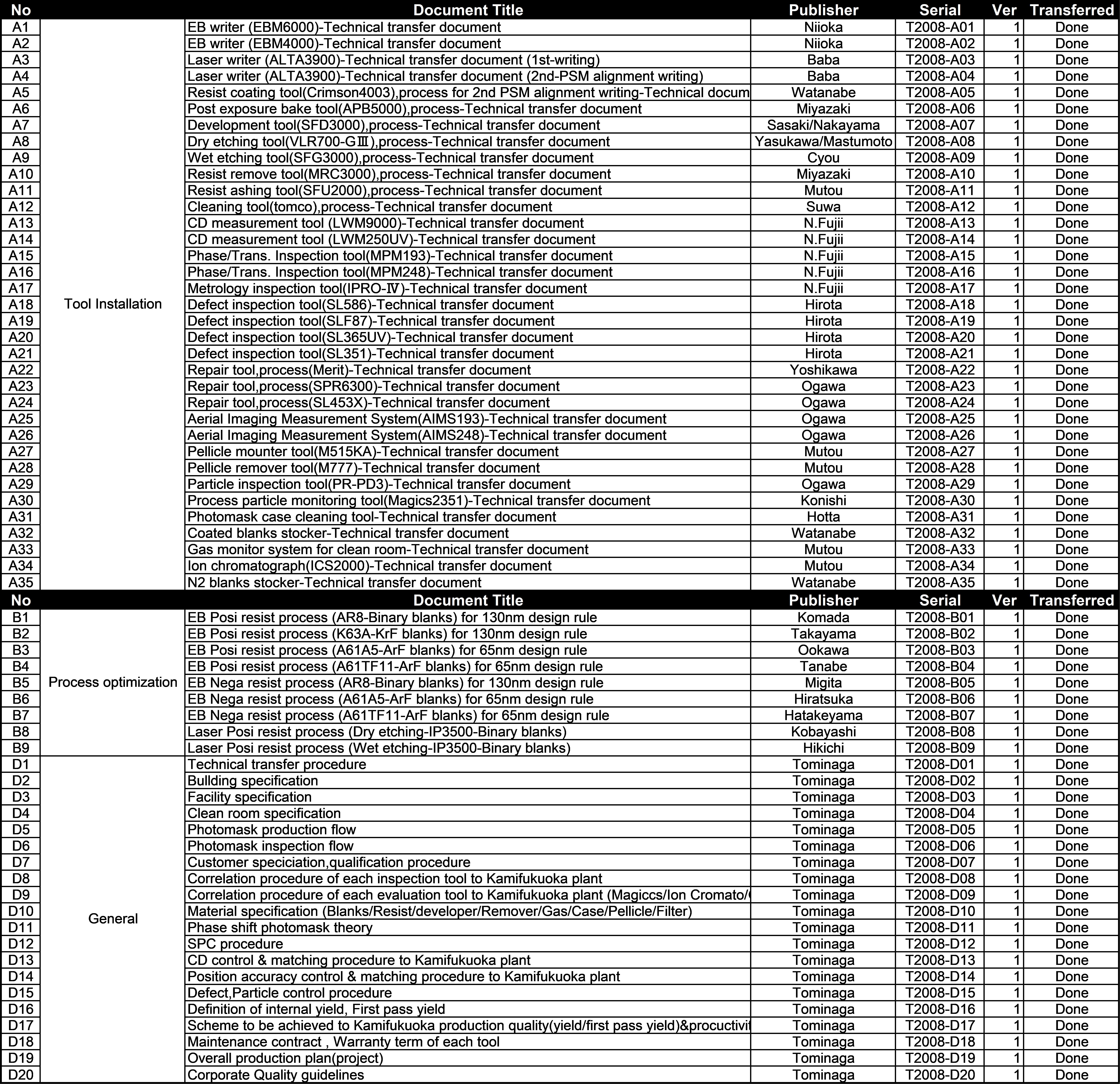 transferred, however, basic information of the material and thickness of resist (not the coating process) will be provided by DNP upon Company’s request , provided that the Company will not disclose such basic information of the material and