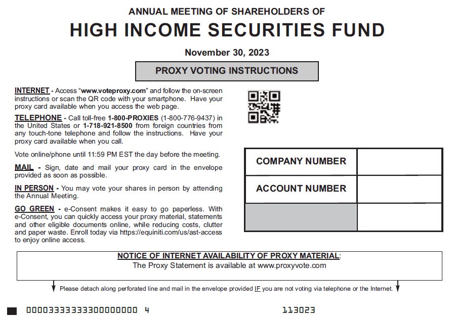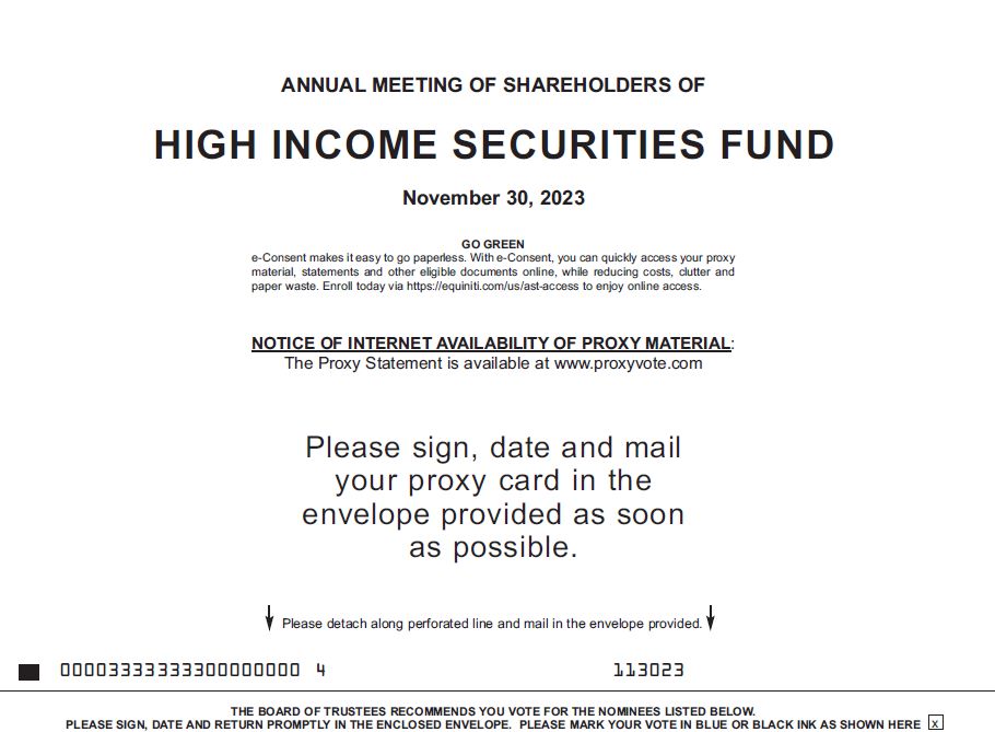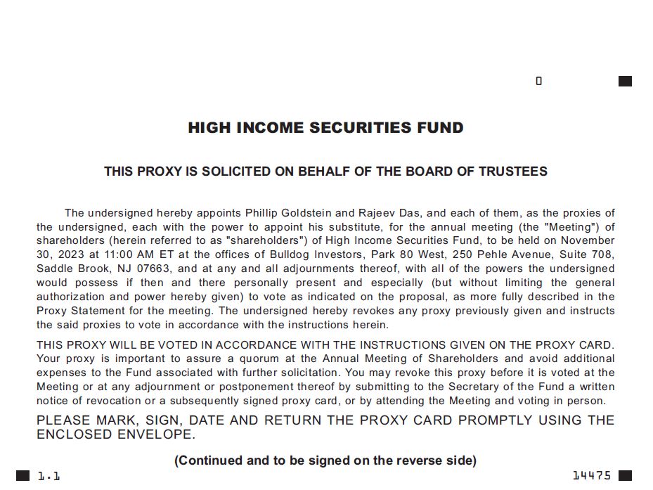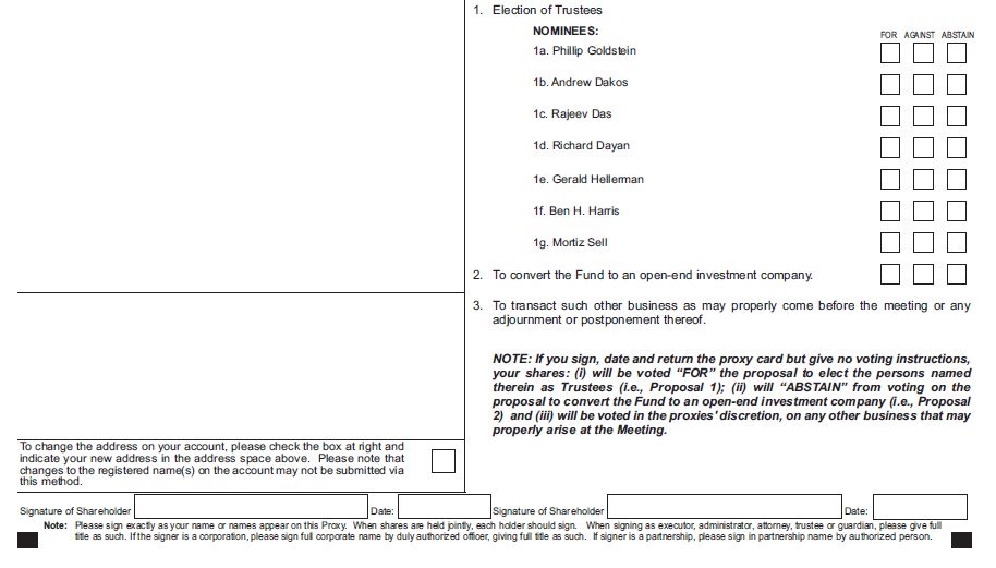 proxy card but give no voting instructions, your shares: (i) will be voted “FOR” the proposal to elect the persons named therein as Trustees (i.e., Proposal 1); (ii) will “ABSTAIN” from voting on the proposal to convert the Fund to an