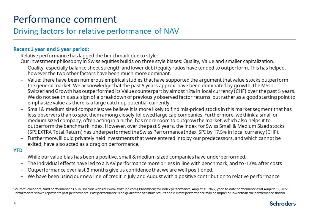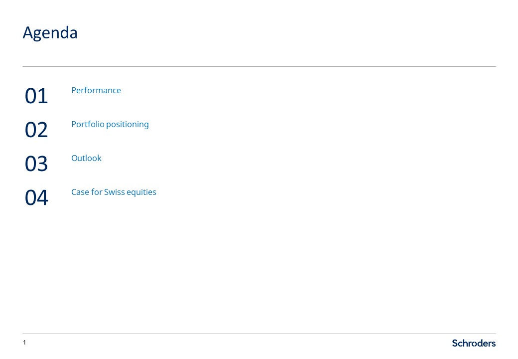Schroders Swiss Equities team and are subject to change. The information and opinions contained in this document have been obtained from sources we consider to be reliable. No responsibility can be accepted for errors of facts obtained from