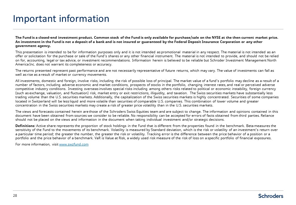 Important information 28 The Fund is a closed-end investment product. Common stock of the Fund is only