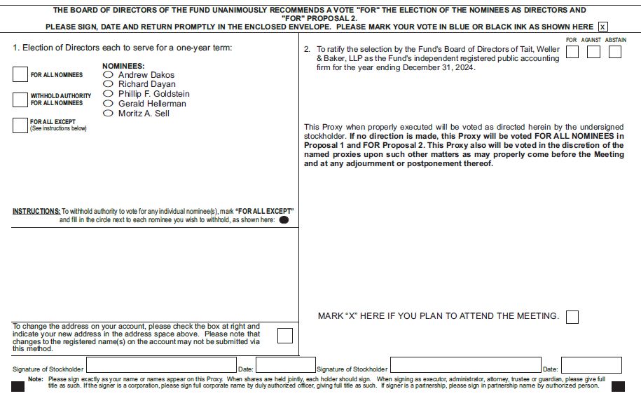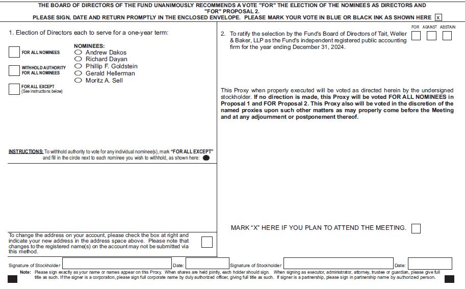 signing and dating and returning the enclosed Proxy. Please see the enclosed Proxy for additional instructions on how to vote by telephone or through the Internet. The enclosed Proxy is being solicited by the Board of Directors of the Fund.