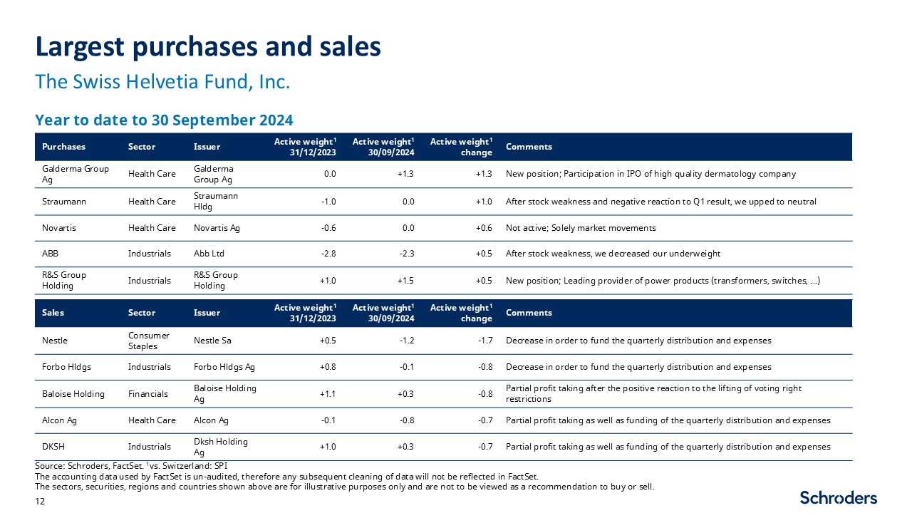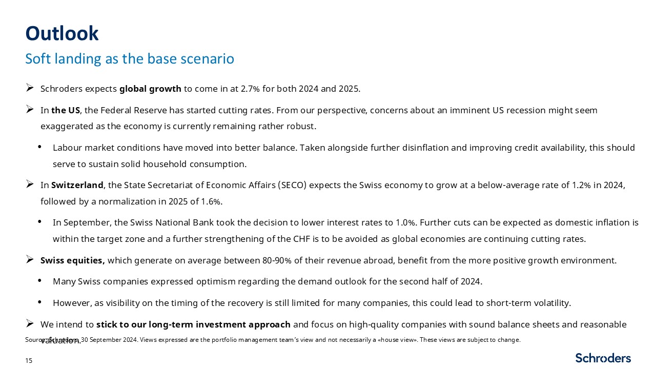 are those of the Schroders Swiss Equities team and are subject to change. The information and opinions contained in this document have been obtained from sources Schroders considers to be reliable. No responsibility can be accepted for errors