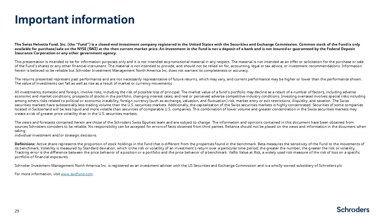 Important information 29 The Swiss Helvetia Fund, Inc. (the “Fund”) is a