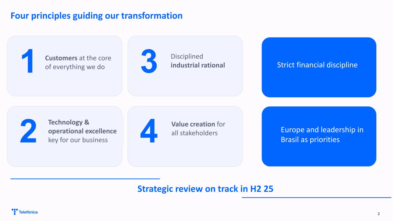***Este documento está clasificado como USO INTERNO por TELEFÓNICA. ***This document is classified as INTERNAL USE by TELEFÓNICA. Strategic review on track in H2 25 Four principles guiding our transformation Customers at the core of everything we do1 Technology & operational excellence key for our business2 Disciplined industrial rational3 Value creation for all stakeholders4 Strict financial discipline Europe and leadership in Brasil as priorities 2