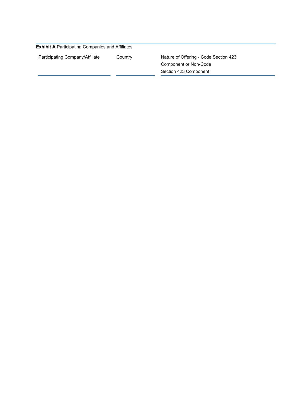 Exhibit A Participating Companies and Affiliates     Participating Company/Affiliate     Country     Nature of Offering - Code Section 423   Component or Non-Code   Section 423 Component