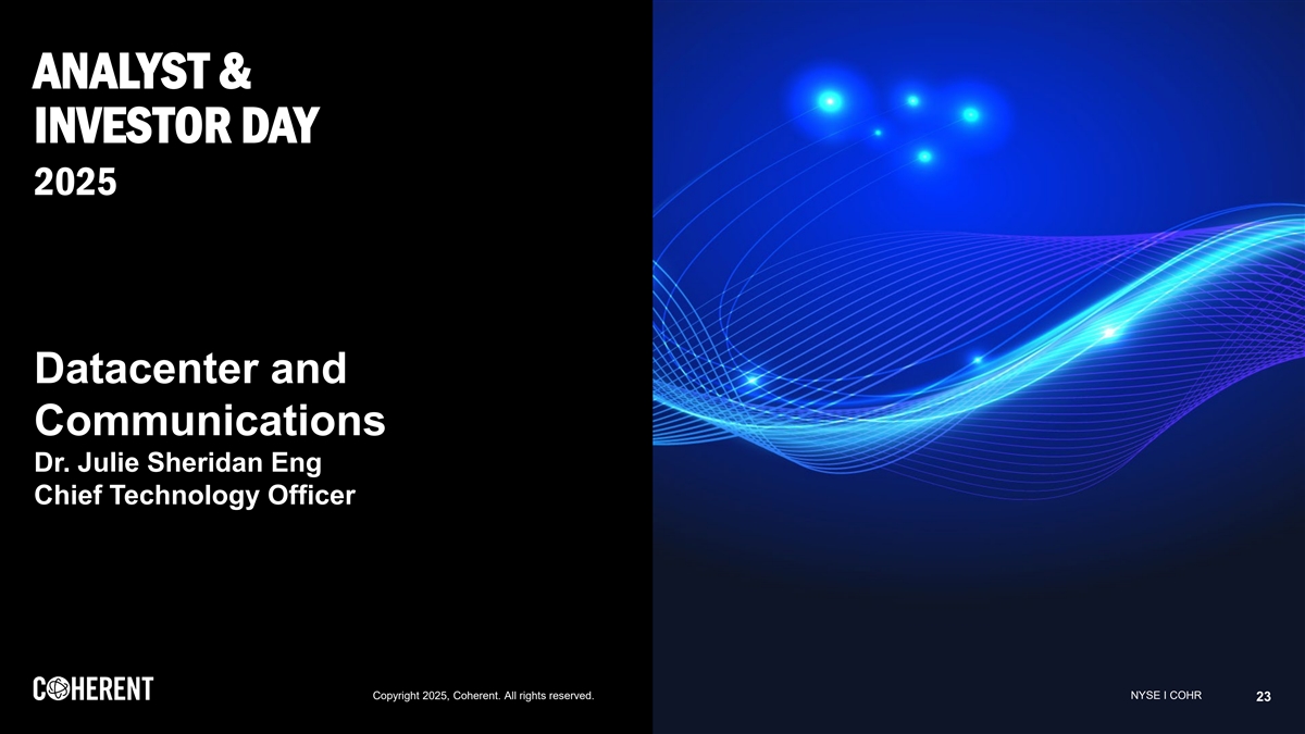 ANALYST & INVESTOR DAY 2025 Datacenter and Communications Dr. Julie Sheridan Eng Chief Technology Officer Copyright 2025, Coherent. All rights reserved. NY NYS SE E I I CO COHR HR 23