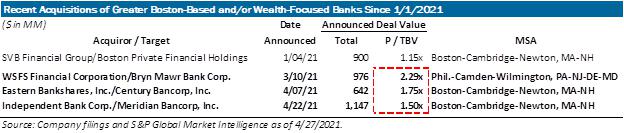 In addition, since the Merger announcement, three other Greater Boston-based banks and / or wealth-focused banks have sold at substantially higher valuations (as of deal announcement date) than BPFH (in bold below):