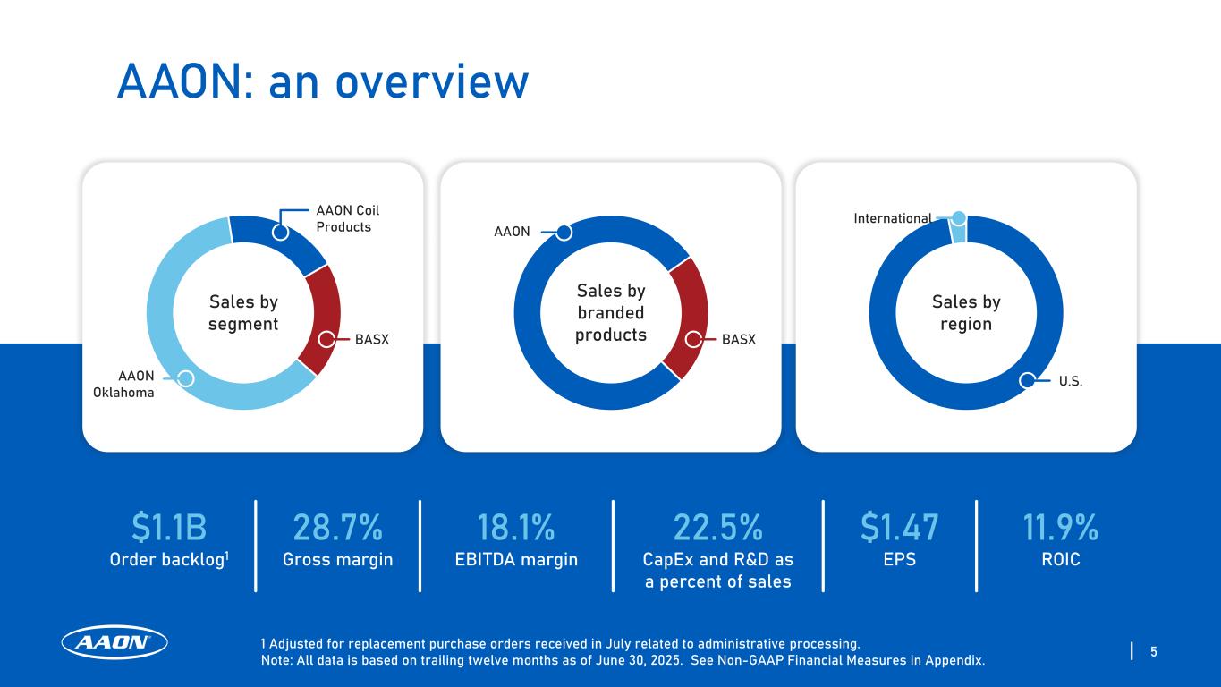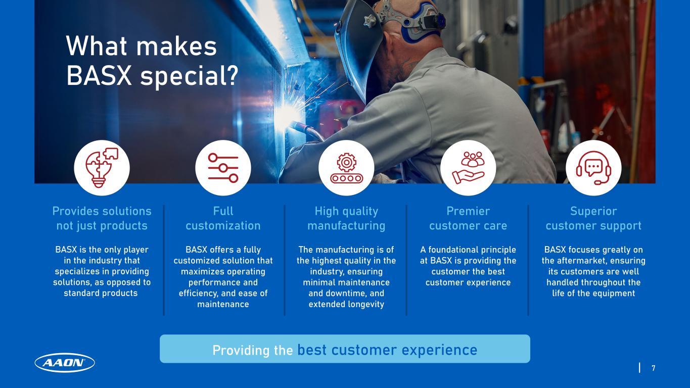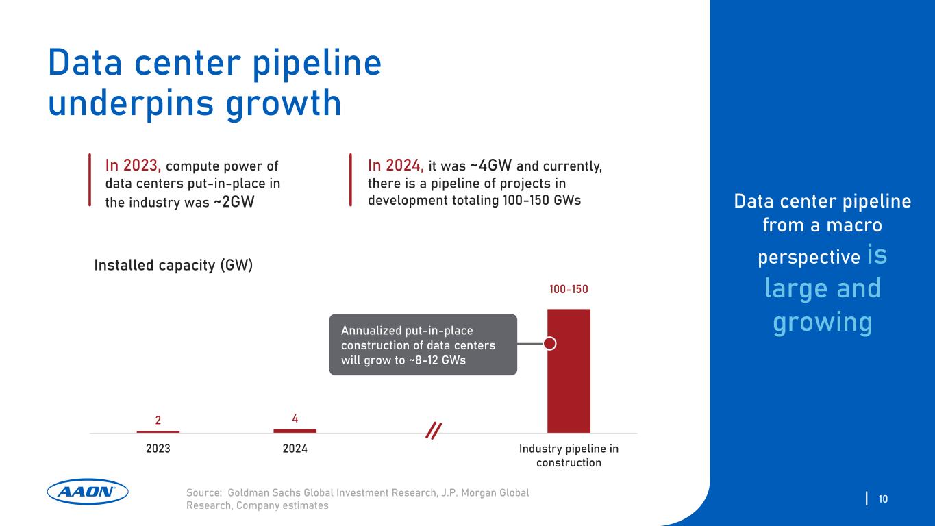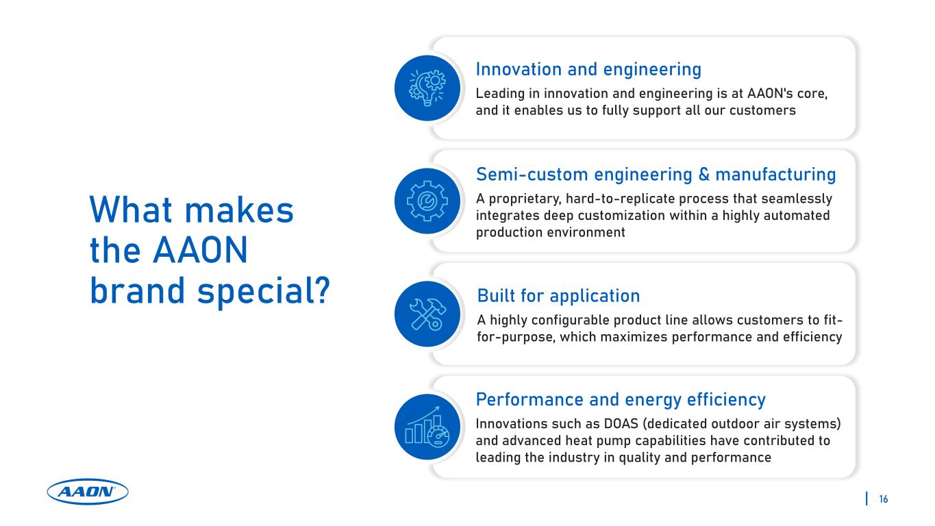 Driving value The AAON investment thesis 2027 Targets Sustainable competitive advantage High barriers to entry protect our market position Strategic growth opportunity Capitalizing on the expansion in the data center market, positioned for outsized returns Financial outperformance With a proven track record of growth and returns, we deliver exceptional stockholder value Market leadership & innovation Industry leader providing cutting-edge, customized solutions that set the standard for excellence Premium offering & differentiation Our rooftop business delivers premium quality and a compelling value proposition, driving customer loyalty and market penetration 12.5%+ 3-year organic sales CAGR 32%-35% gross margin 3