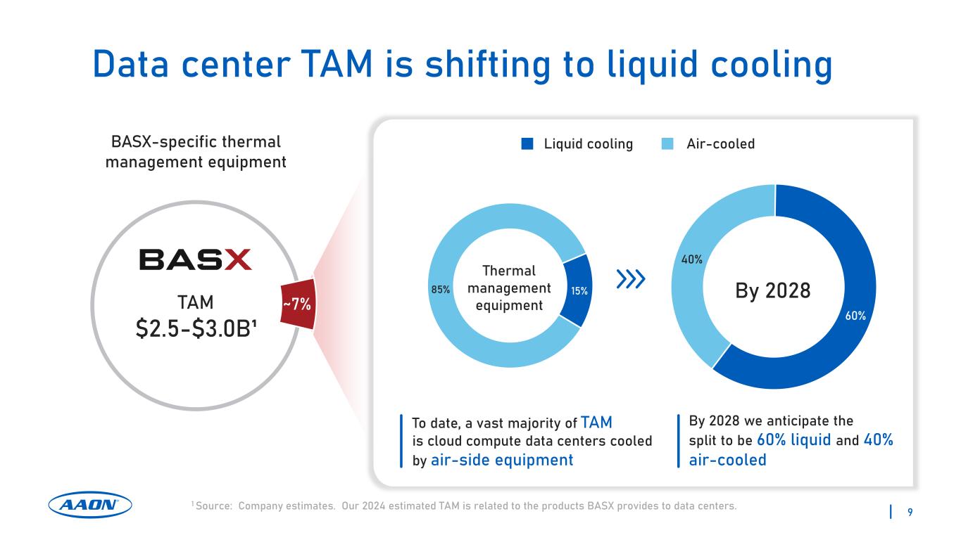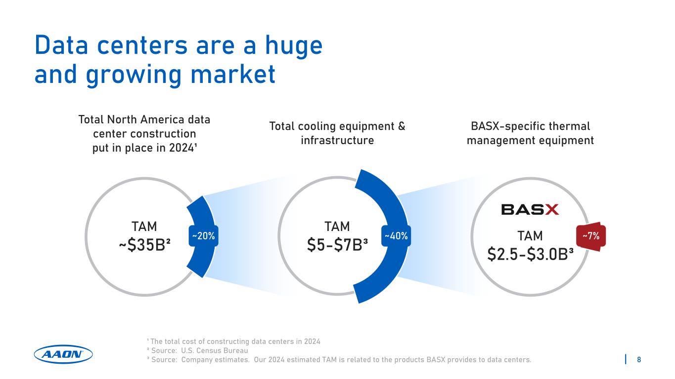 Data centers are a huge and growing market ¹ The total cost of constructing data centers in 2024 ² Source: U.S. Census Bureau ³ Source: Company estimates. Our 2024 estimated TAM is related to the products BASX provides to data centers. TAM ~�35B² TAM �5-�7B³ TAM �2.5-�3.0B³ ~40% ~7% Total North America data center construction put in place in 2024¹ Total cooling equipment & infrastructure BASX-specific thermal management equipment ~20% 8