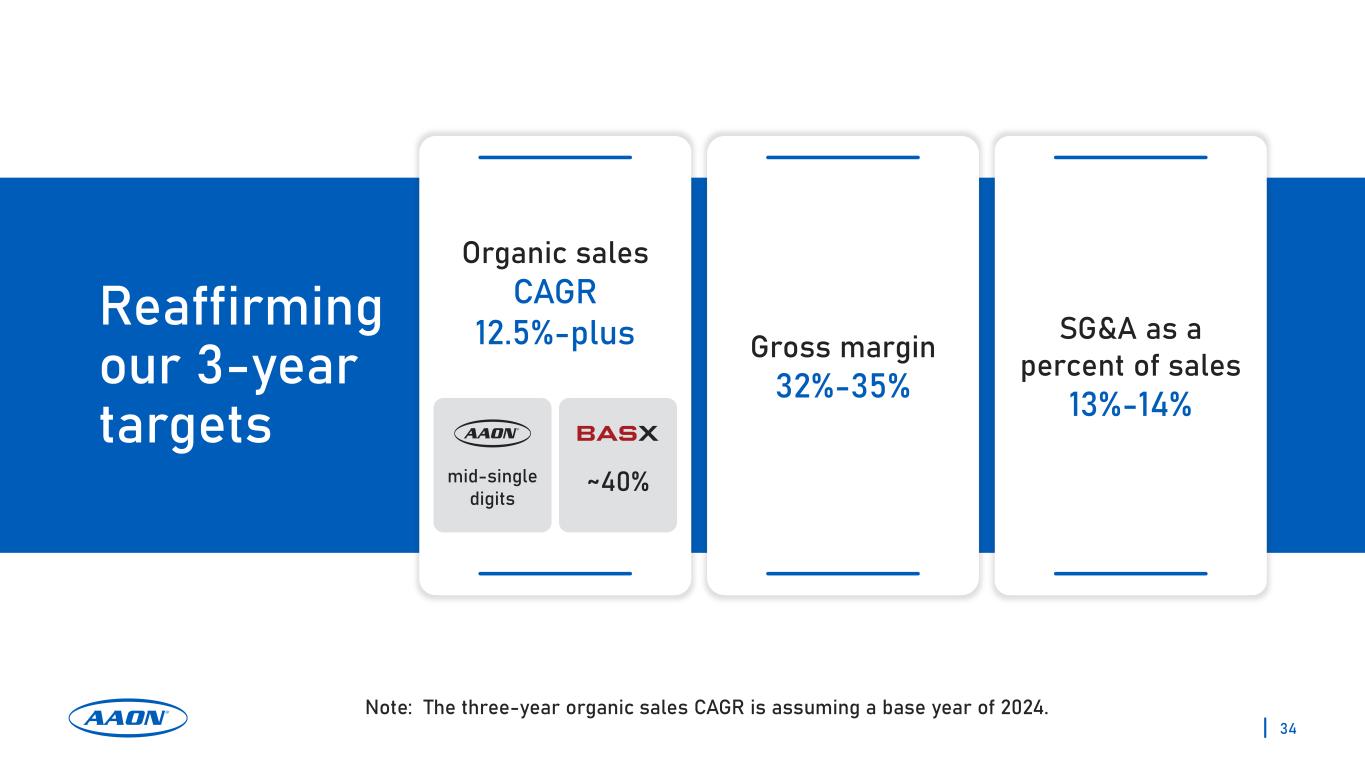 Gross margin 32%-35% SG&A as a percent of sales 13%-14% Reaffirming our 3-year targets Organic sales CAGR 12.5%-plus mid-single digits ~40% Note: The three-year organic sales CAGR is assuming a base year of 2024. 34