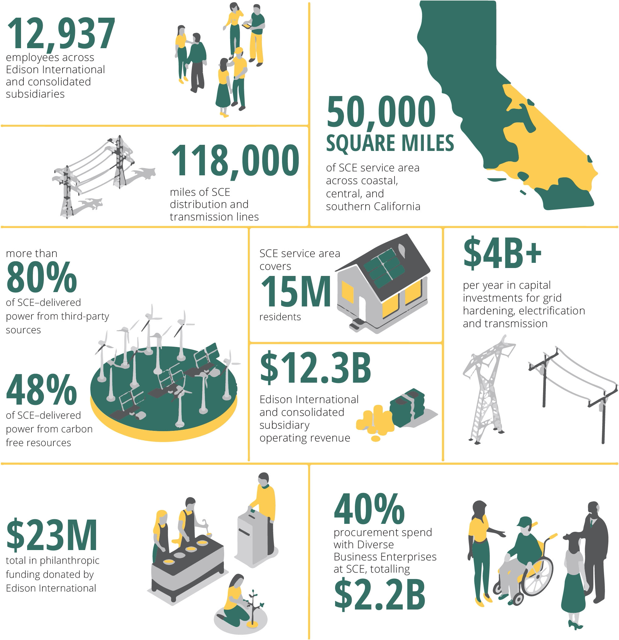 Our vision is to lead the transformation of the electric power industry, focusing on opportunities in clean energy, efficient electrification, grid of the future and customer choice. EIX is advancing this vision by growing our business toward a clean energy future while adapting our infrastructure and operations to a new climate reality, striving for best-in-class operations, and providing superior value to our customers and shareholders. EIX’s primary operating business is SCE, a rate-regulated electric utility that supplies electric energy to approximately 15 million people in a 50,000 square-mile area within Central, Coastal and Southern California. Together, the Company is focused on the following strategic priorities: