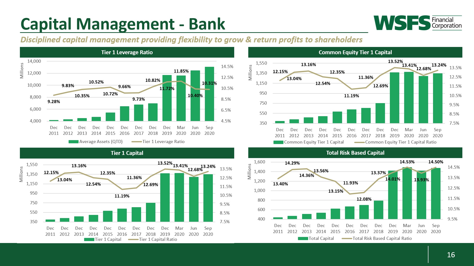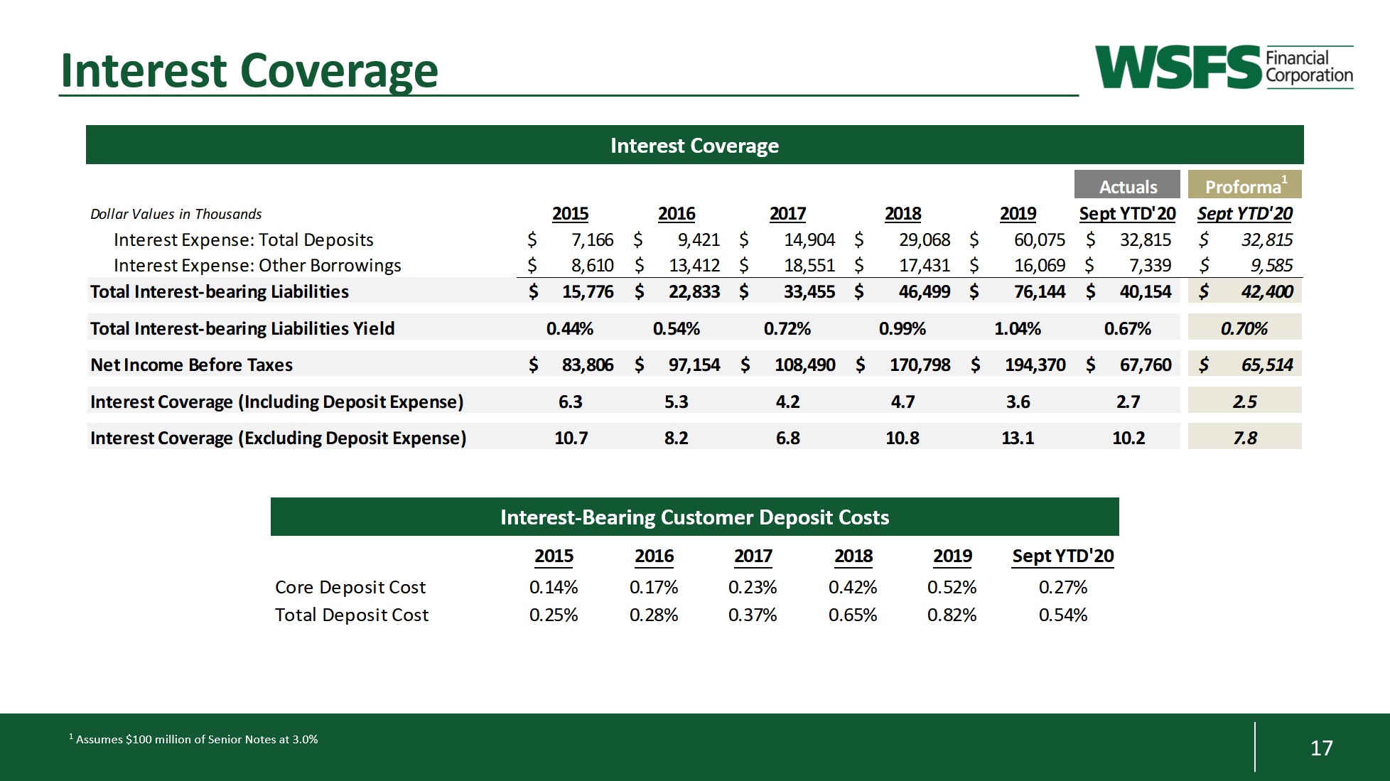 16 Capital Management - Bank Disciplined capital management providing flexibility to grow & return profits to shareholders 12.15% 13.04% 13.16% 12.54% 12.35% 11.19% 11.36% 12.69% 13.52% 13.41% 12.68% 13.24% 7.5% 8.5% 9.5% 10.5% 11.5% 12.5% 13.5% 350 550 750 950 1,150 1,350 1,550 Dec 2011 Dec 2012 Dec 2013 Dec 2014 Dec 2015 Dec 2016 Dec 2017 Dec 2018 Dec 2019 Mar 2020 Jun 2020 Sep 2020 Millions Tier 1 Capital Tier 1 Capital Ratio 9.28% 9.83% 10.35% 10.52% 10.72% 9.66% 9.73% 10.82% 11.72% 11.85% 10.40% 10.31% 4.5% 6.5% 8.5% 10.5% 12.5% 14.5% 4,000 6,000 8,000 10,000 12,000 14,000 Dec 2011 Dec 2012 Dec 2013 Dec 2014 Dec 2015 Dec 2016 Dec 2017 Dec 2018 Dec 2019 Mar 2020 Jun 2020 Sep 2020 Millions Average Assets (QTD) Tier 1 Leverage Ratio Tier 1 Leverage Ratio 12.15% 13.04% 13.16% 12.54% 12.35% 11.19% 11.36% 12.69% 13.52% 13.41% 12.68% 13.24% 7.5% 8.5% 9.5% 10.5% 11.5% 12.5% 13.5% 350 550 750 950 1,150 1,350 1,550 Dec 2011 Dec 2012 Dec 2013 Dec 2014 Dec 2015 Dec 2016 Dec 2017 Dec 2018 Dec 2019 Mar 2020 Jun 2020 Sep 2020 Millions Common Equity Tier 1 Capital Common Equity Tier 1 Capital Ratio Common Equity Tier 1 Capital 13.40% 14.29% 14.36% 13.56% 13.15% 11.93% 12.08% 13.37% 14.01% 14.53% 13.93% 14.50% 9.5% 10.5% 11.5% 12.5% 13.5% 14.5% 400 600 800 1,000 1,200 1,400 1,600 Dec 2011 Dec 2012 Dec 2013 Dec 2014 Dec 2015 Dec 2016 Dec 2017 Dec 2018 Dec 2019 Mar 2020 Jun 2020 Sep 2020 Millions Total Capital Total Risk Based Capital Ratio Tier 1 Capital Total Risk Based Capital
