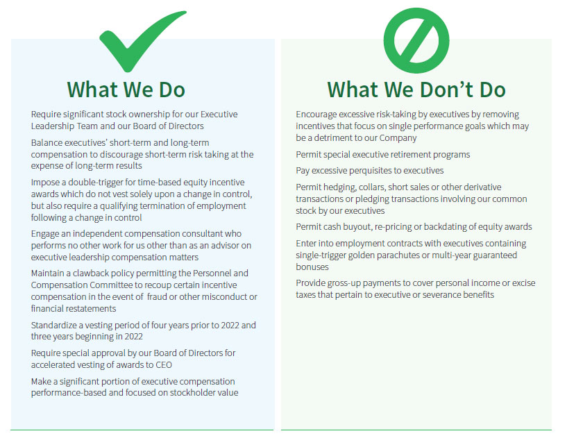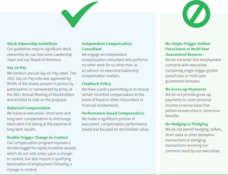 The Annual Meeting is being held to consider the following proposals: (1) The election of five directors for a three-year term expiring on the date of our Annual Meeting of Stockholders to be held in 2025; (2) A non-binding advisory vote on the compensation of our NEOs; (3) The ratification of the appointment of KPMG LLP as our independent registered public accounting firm for the fiscal year ending December 31, 2022; and (4) Such other matters as may properly come before the meeting or any adjournment thereof. Our Board of Directors recommends a vote: FOR each of the five nominees for director, FOR the non-binding advisory vote on the compensation of our NEOs and FOR ratification of the appointment of KPMG LLP as our independent registered public accounting firm. |