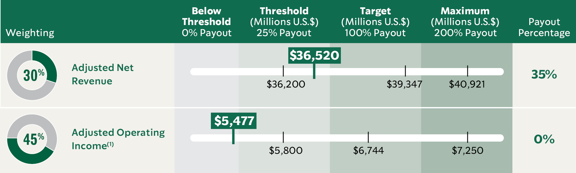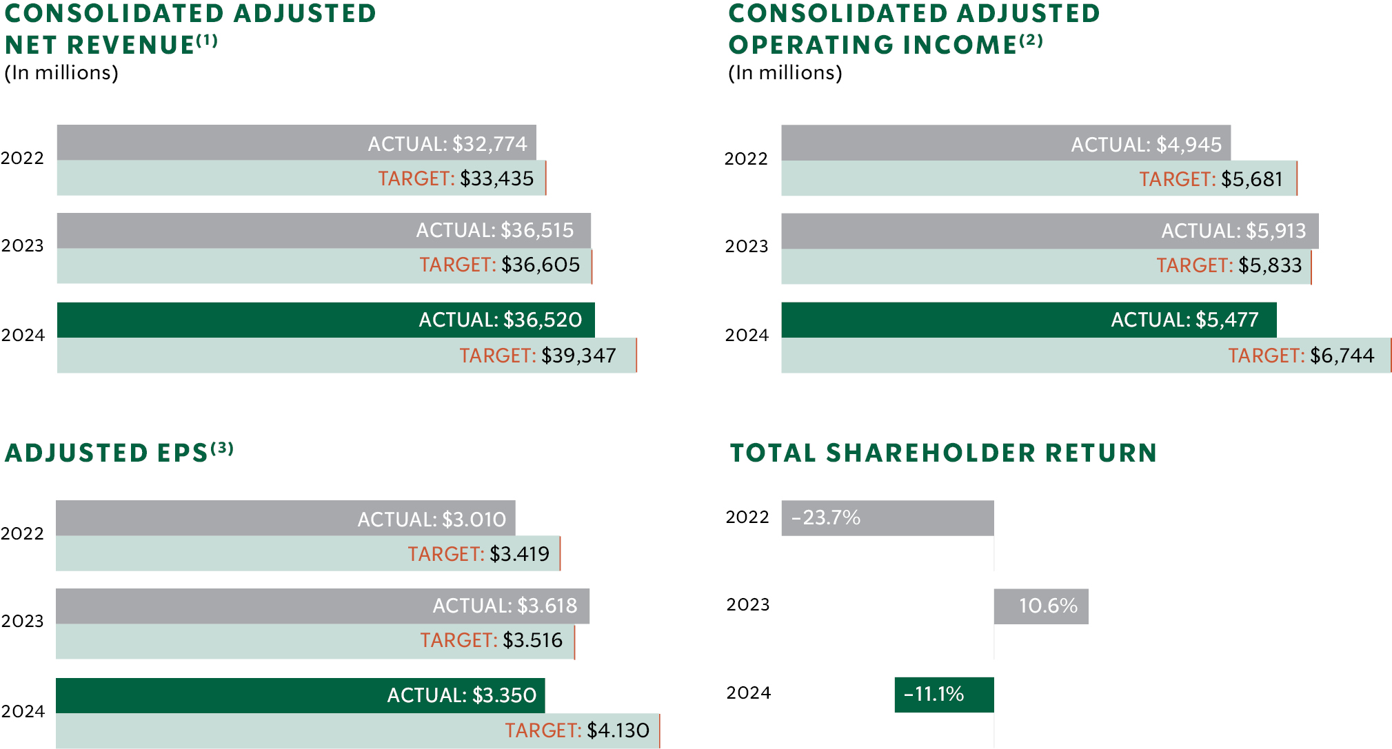 The Company’s executive compensation program also uses certain non-GAAP financial measures as performance goals, which we refer to in this proxy statement as “adjusted net revenues,” “adjusted operating income,” and “adjusted EPS.” Our non-GAAP financial measures of adjusted net revenues, adjusted operating income, and adjusted EPS exclude the below listed items and their related tax impacts, as we believe they do not contribute to a meaningful evaluation of the Company’s future operating performance or comparisons to the Company’s past operating performance for purposes of determining executive compensation. The GAAP measures most directly comparable to adjusted net revenues, adjusted operating income, and adjusted EPS are revenues, operating income, and diluted net EPS, respectively.