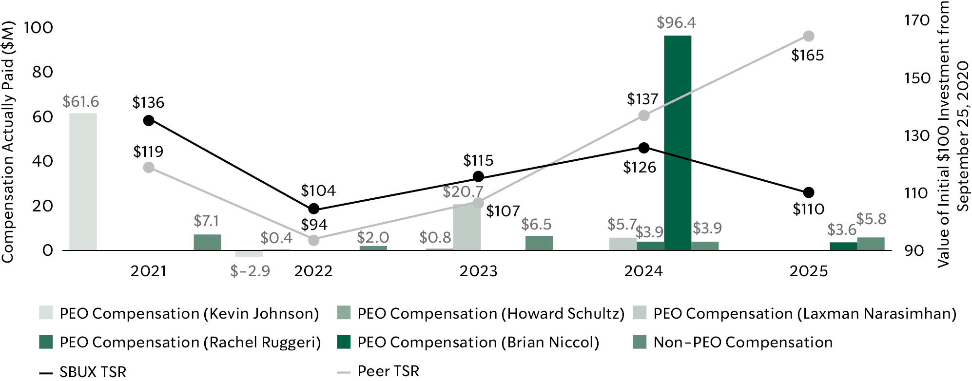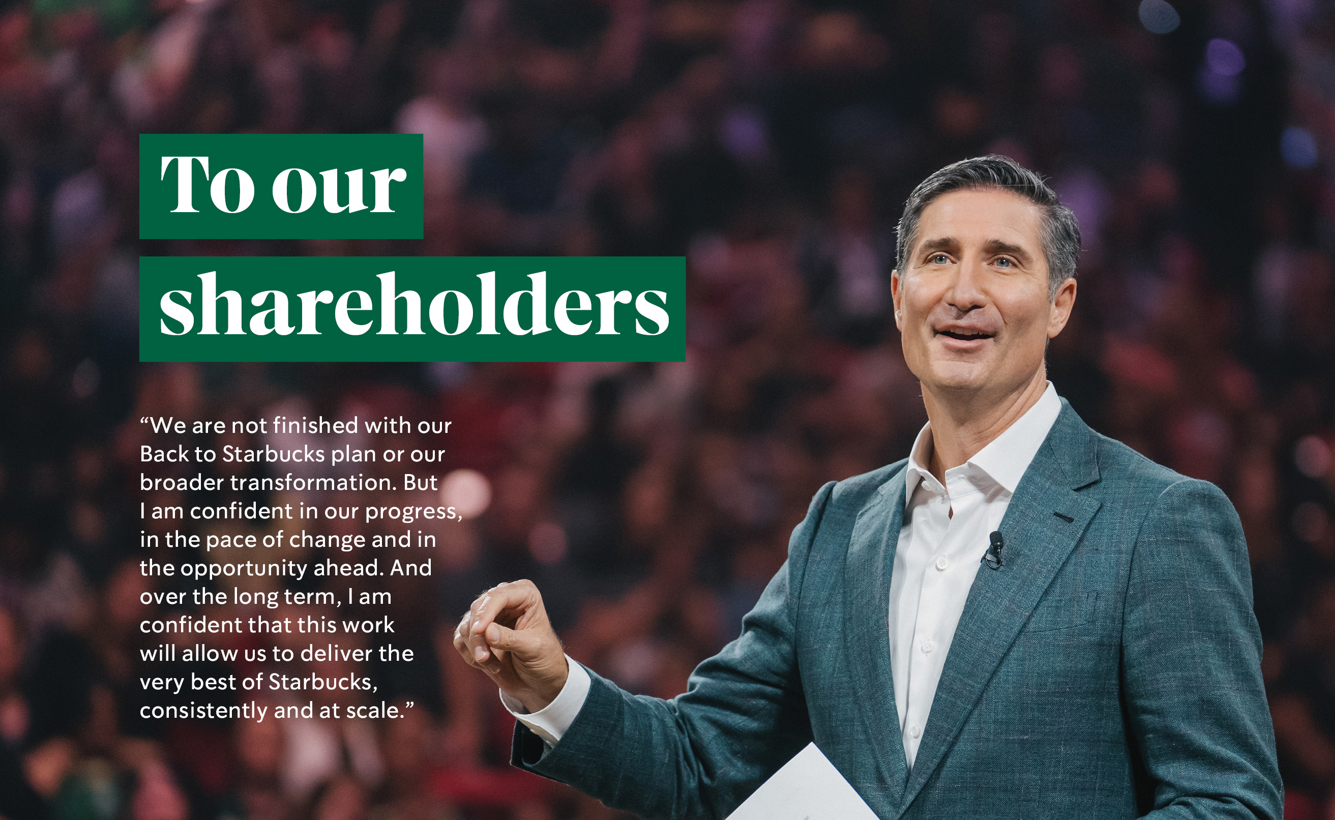 This proxy statement includes forward-looking statements within the meaning of the Private Securities Litigation Reform Act of 1995. All statements contained in this proxy statement other than statements of historical fact, including statements relating to trends in or expectations relating to the expected effects of our initiatives, strategies, and plans, as well as trends in or expectations regarding our financial results, costs and expenses, dividend issuances and share repurchases, and long-term growth model and drivers, and regarding our business strategy and plans such as our “Back to Starbucks” strategy, and our objectives for future operations are forward-looking statements. Words such as “believes”, “expects”, “anticipates”, “estimates”, “intends”, “plans”, “seeks”, or words of similar meaning, or future or conditional verbs, such as “will”, “should”, “could”, “may”, “aims”, “intends”, or “projects”, and similar expressions are intended to identify forward-looking statements, although not all forward-looking statements contain these identifying words. We have based these forward-looking statements largely on our current assumptions, expectations, and projections about future events and trends. These statements are subject to a variety of risks, uncertainties, and other factors (many beyond our control) that could cause our actual results to differ materially from our historical experience or from our current expectations or projections. These risks and uncertainties related thereto include, but are not limited to, the risks detailed in our filings with the Securities and Exchange Commission (the “SEC”), including the Risk Factors section of our Annual Report on Form 10-K for the fiscal year ended September 28, 2025. New risks periodically emerge. It is not possible for our management to predict all risks, nor can we assess the impact of all factors on our business or the extent to which any factor, or combination of factors, may cause actual results to differ materially from those contained in any forward-looking statements we may make. In light of these risks, uncertainties, and assumptions, the future events and trends discussed in this proxy statement may not occur and actual results could differ materially and adversely from those anticipated or implied in the forward-looking statements. You should not rely upon forward-looking statements as predictions of future events. The events and circumstances reflected in the forward-looking statements may not be achieved or occur. Although we believe that the expectations reflected in the forward-looking statements are reasonable, we cannot guarantee future results. We assume no obligation to update or alter any of these forward-looking statements after the date of this proxy statement, except as may be required by law. Given these risks and uncertainties, readers are cautioned not to place undue reliance on such forward-looking statements.