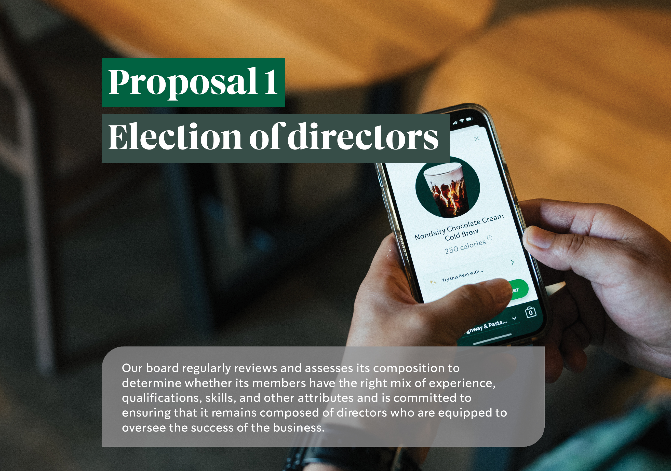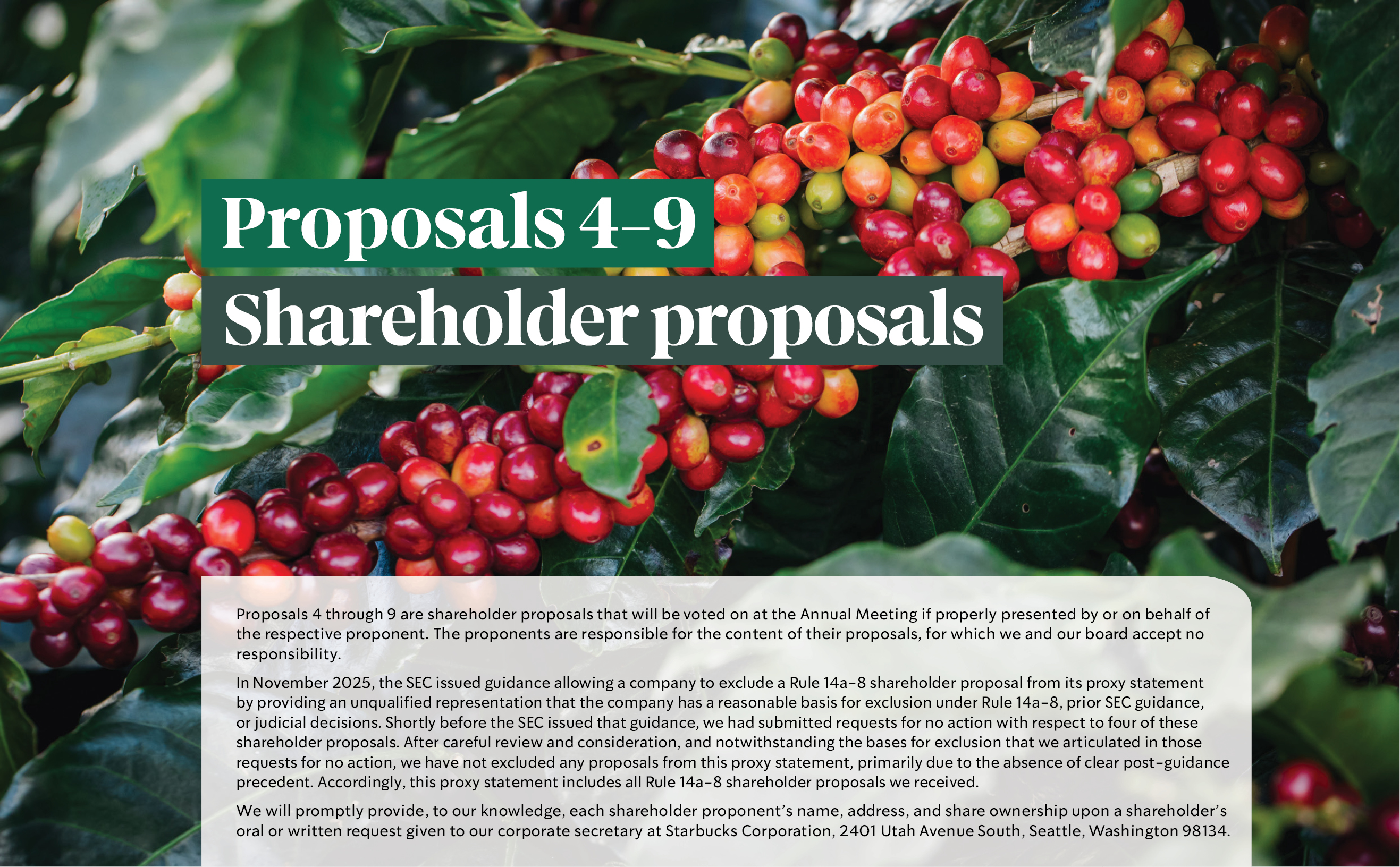 The proxy statement and Fiscal Year 2025 Annual Report to shareholders are available at our Investor Relations website at http://investor.starbucks.com or at www.proxyvote.com, free of charge.