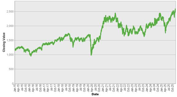 S&P 500® Index – Historical Closing Values January 2, 2015 to December 18, 2025 |