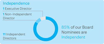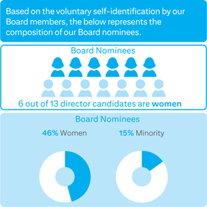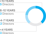 The average board tenure of our nominees is 8.7 years and 5 nominees have served for more than 10 years. There have been 3 new Directors elected within the last 5 years. | |