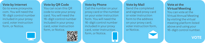 Use the Internet to transmit your voting instructions and for electronic delivery of information up until 11:59 p.m. Eastern Time on May 19, 2026. Have your proxy card in hand when you access the website and follow the instructions to obtain your records and to create an electronic voting instruction form.