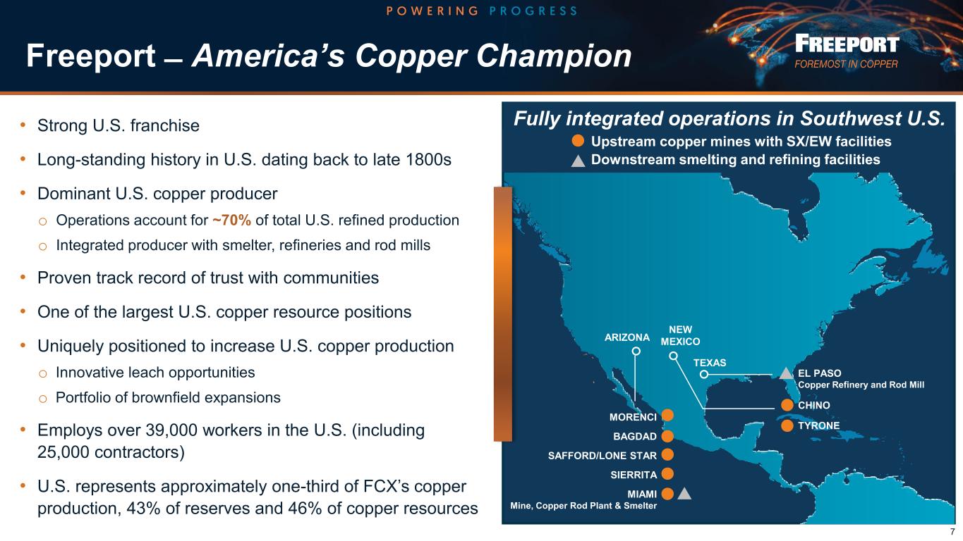 U.S. Copper Pricing 6 $3.85 $4.15 $4.24 $4.32 $4.45 $3.85 $4.22 $4.57 $4.72 $5.70 2023 2024 1Q25 2Q25 Current* L M E C O M E X LME and COMEX Copper Price Averages Source: Bloomberg * As of 7/22/25 COMEX premium to LME 0% 2% 8% 9% 28% Section 232 Investigation on Copper • In February 2025, the President identified copper as critical to U.S. national security, economic strength, and industrial resilience. • The Secretary of Commerce was directed to investigate the impact of copper imports on national security under the Trade Expansion Act. • In July 2025, the President announced a 50% tariff on copper imports with an expected effective date of August 1, 2025. • The tariff follows a national security assessment highlighting copper’s essential role in an array of industries. • The specific tariff schedule and list of affected copper products are pending.Current 28% premium equivalent to ~$1.7 bn per annum in estimated additional cash flow