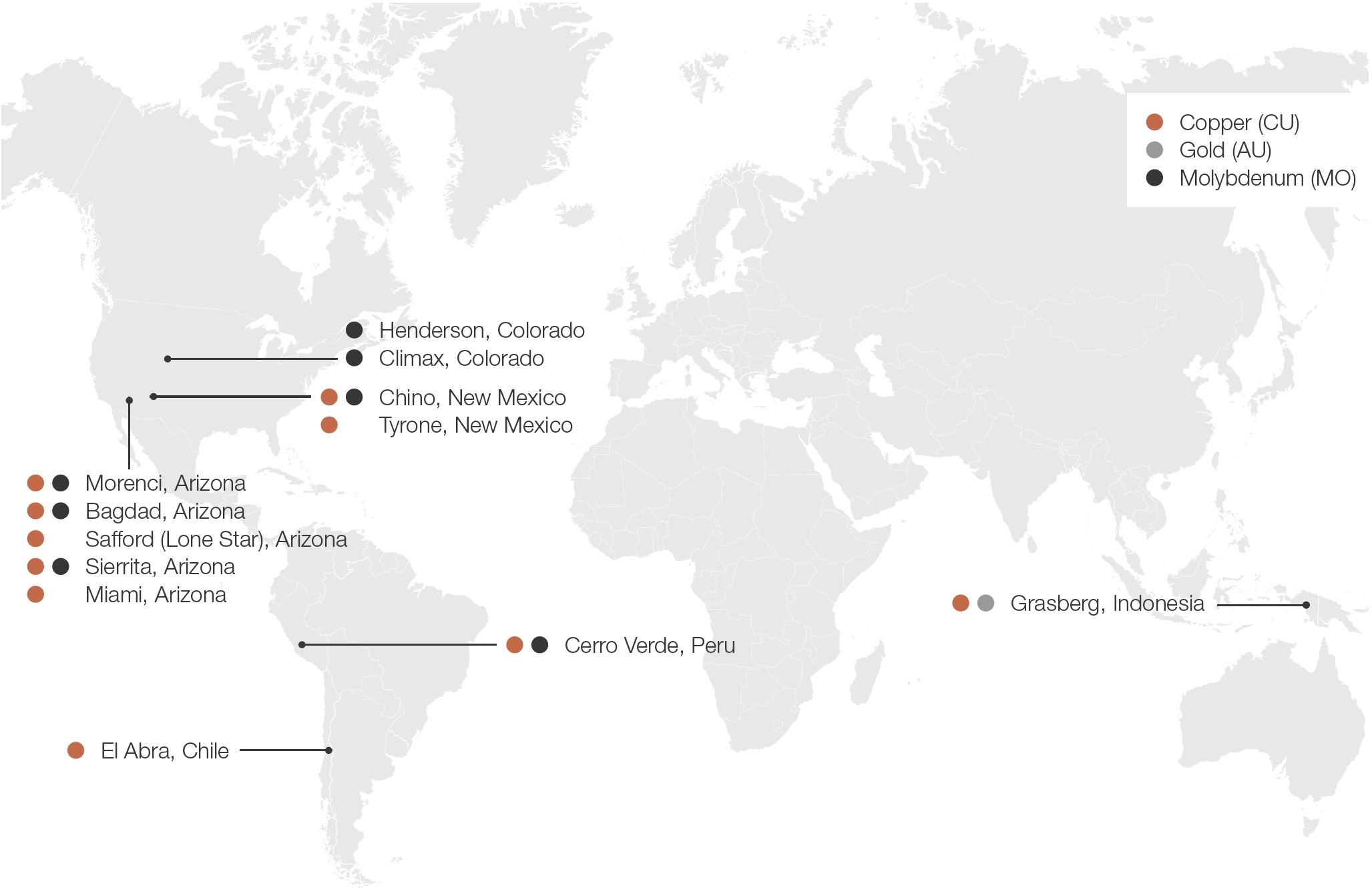 Freeport’s portfolio of assets includes the Grasberg minerals district in Indonesia, one of the world’s largest copper and gold deposits, and significant mining operations in North America and South America, including the large-scale Morenci minerals district in Arizona and the Cerro Verde operation in Peru.