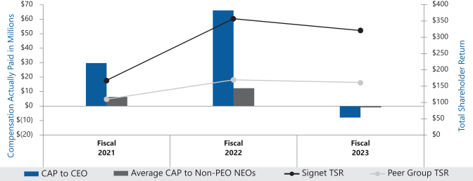 In addition to the accompanying Proxy Statement, we encourage you to review our Annual Report to Shareholders, including the accompanying Letters to Shareholders from Chief Executive Officer Virginia C. “Gina” Drosos and me. We encourage you to review this year’s Corporate Citizenship & Sustainability Report as well to understand how Signet is fulfilling its purpose and its ESG responsibilities. Our Board also invites you to the 2023 Annual Meeting of Shareholders which will be held June 16, 2023, at 11 a.m., Eastern Time. The Meeting will be held virtually via live audio webcast at www.virtualshareholdermeeting.com/SIG2023. You will not be able to attend this meeting in person. If you plan to attend the meeting virtually, please review the instructions for attendance included in the “Shareholder Q&A” section of the accompanying Proxy Statement.