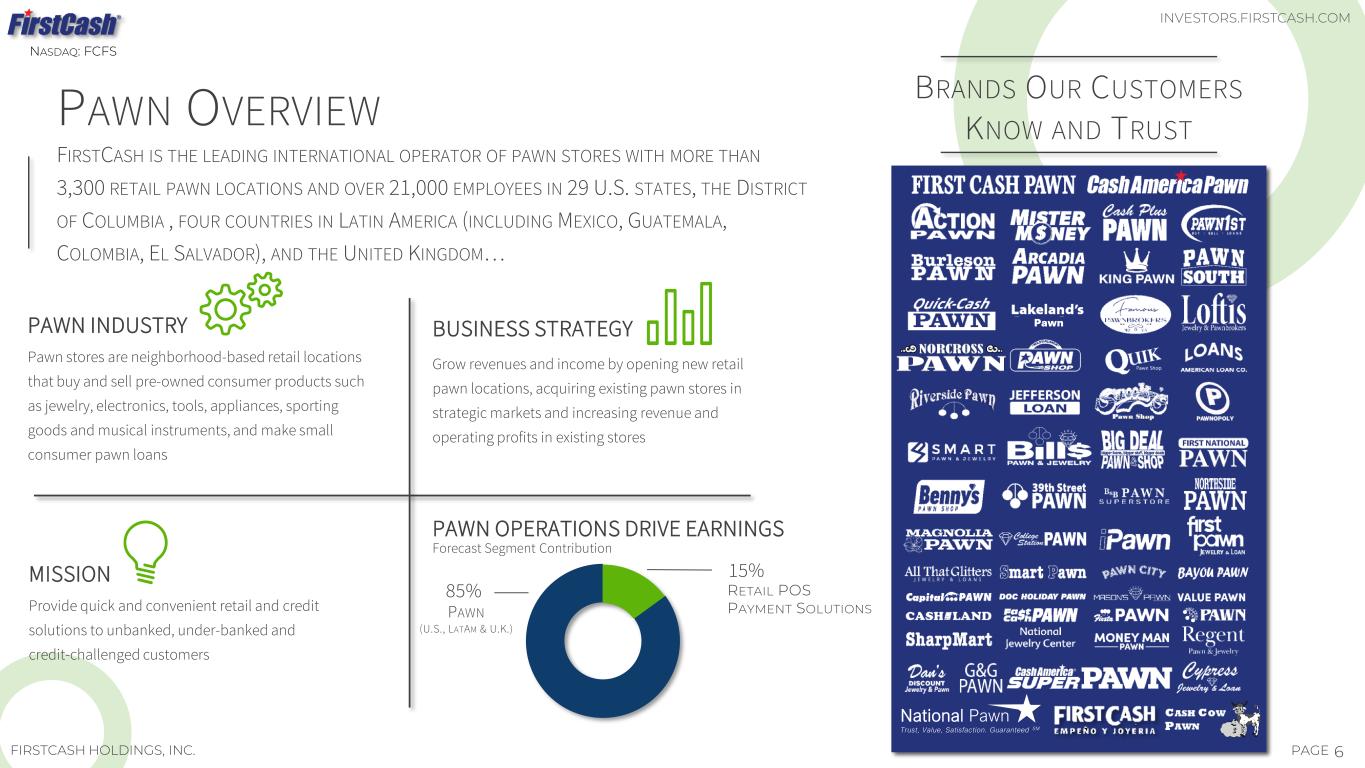 5PAGEFIRSTCASH HOLDINGS, INC. PAWN OPERATIONS NASHVILLE, TENNESSEE NASDAQ: FCFS INVESTORS.FIRSTCASH.COM