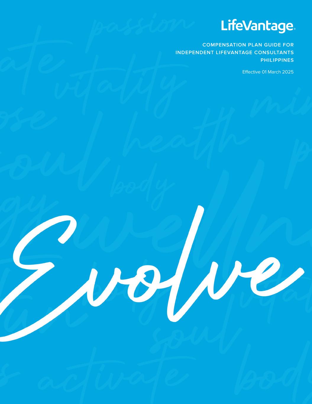©2024 Protandim Philippines Corporation • 02 8 395 3355 • www.lifevantage.com/ph-en/ This form may not be altered without the express written consent of LifeVantage. E V O LV E C O M P E N S AT I O N P L A N – P H I L I P P I N E S 241029.04 • Page 2 of 32 Revised 12 November, 2024 Evolve Compensation Plan – Philippines E F F E C T I V E 0 1 M A R C H 2 0 2 5 Welcome to life activated. It’s time to live with purpose. It’s time to inspire remarkable. It’s time to live activated. Life. It’s complicated. Messy. Beautiful. It goes by fast, and you want to live life to the fullest. But everyday responsibilities, fears, or restrictions can hold you back. You deserve to break free. You deserve to be your best self and live a healthy, happy life on your terms. LifeVantage is here to help. Our products are purposefully designed to activate your body’s ability to create vibrant health, starting at the cellular level. And when you look and feel your best, you’ll want to help others do the same. LifeVantage activates financial wellness with the opportunity to grow a business that can change people’s lives for the better. That’s where Evolve creates possibilities. Evolve is a compensation plan that allows you to work part-time or full-time.* Whether you are looking to simply share life-changing products or wanting to work and grow as a professional mentor and leader, being an Independent LifeVantage® Consultant will positively challenge and reward you. *LifeVantage does not promise the financial success of any Consultant. Your success depends on your skill, fortitude, dedication, and your ability to lead others to emulate these qualities. Nothing in this guide is a representation that you will be financially successful. LifeVantage does not guarantee any income or Rank success.