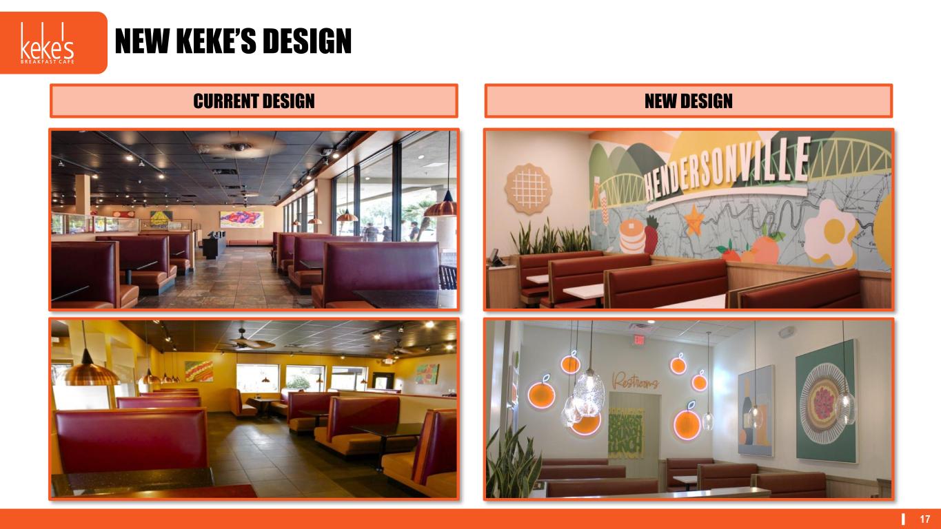 16 GUEST FEEDBACK Average Google Rating 4.45 4.54 4.78 3.00 3.50 4.00 4.50 5.00 2022 2023 2024 Overall Net Sentiment 27 40 72 15 25 35 45 55 65 75 2024 BBI Industry BBI Family Keke's