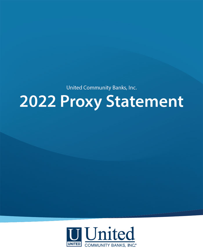 As in prior years, we have again elected to provide access to our proxy materials over the Internet under the Securities and Exchange Commission’s “notice and access” rules. The accompanying Notice of 2022 Annual Meeting of Shareholders and Proxy Statement describes the matters to be acted upon and is available at www.proxyvote.com and at our corporate website www.ucbi.com. The Annual Report to Shareholders and our Annual Report on Form 10-K for the year ended December 31, 2021 are also available at those websites.