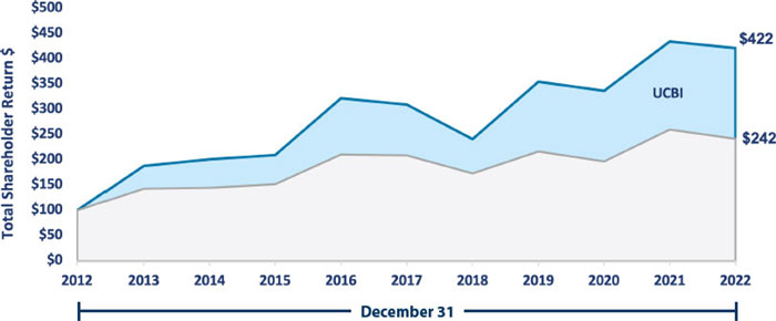 We are also providing access to our proxy materials over the Internet under the Securities and Exchange Commission’s “notice and access” rules, which means that our shareholders will receive a Notice of Internet Availability that informs them how to access our proxy materials, including the accompanying Notice of 2023 Annual Meeting of Shareholders and Proxy Statement. These materials describe the matters to be acted upon and are available at www.proxyvote.com and at our corporate website www.ucbi.com. The Annual Report to Shareholders and our Annual Report on Form 10-K for the year ended December 31, 2022 are also available at those websites.