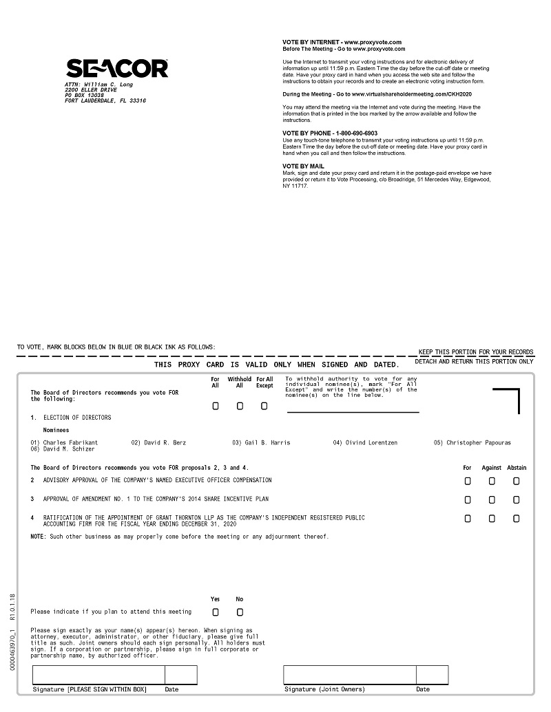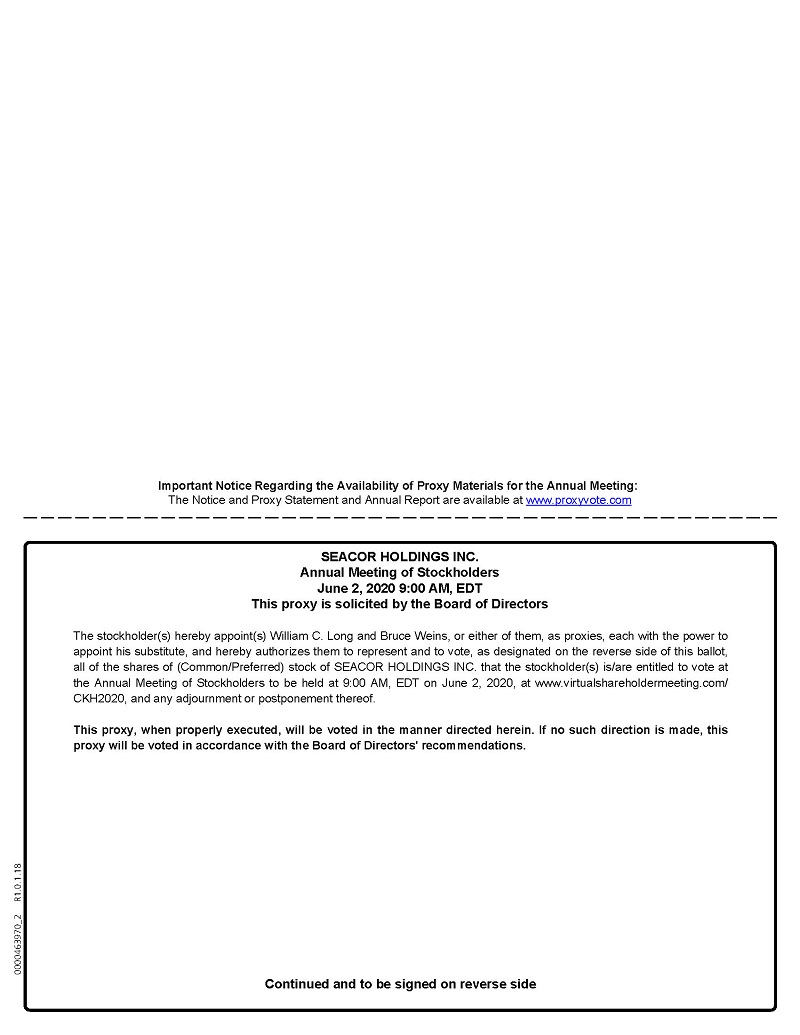 Your vote is very important. Whether or not you plan to virtually attend the annual meeting and regardless of the number of shares of the Company’s common stock that you own, you are encouraged to read the enclosed Proxy Statement and Annual Report on Form 10-K carefully and we hope you will vote as soon as possible. You may vote your shares over the Internet at www.virtualshareholdermeeting.com/CKH2020 or via the toll-free telephone number on the voting instruction card. If you received a paper copy of a proxy or voting instruction card by mail, you may submit your proxy or voting instruction card for the Annual Meeting by completing, signing, dating and returning your proxy or voting instruction card in the pre-addressed envelope provided. Stockholders of record and beneficial owners will be able to vote their shares electronically at the virtual Annual Meeting. Submitting a vote before the Annual Meeting will not preclude you from voting your shares electronically at the virtual meeting should you decide to attend.