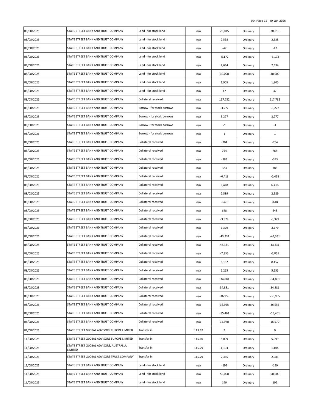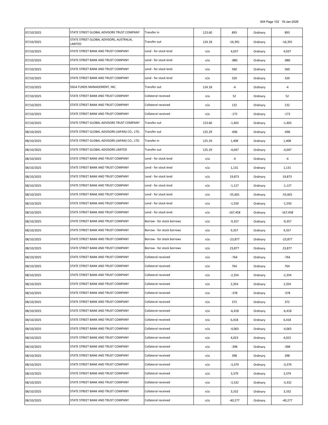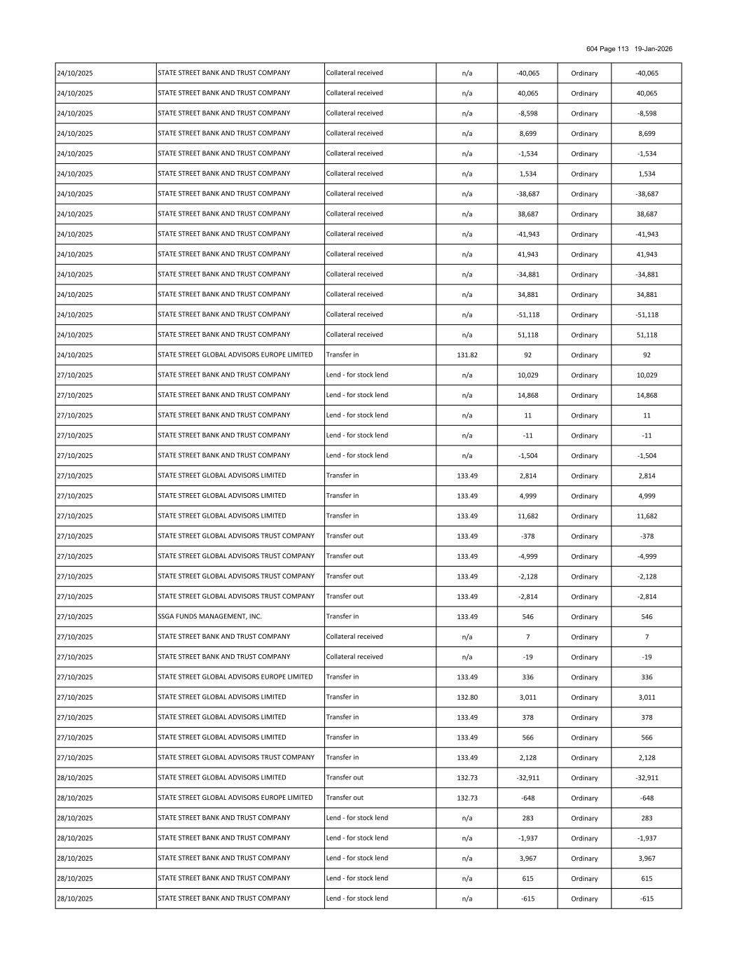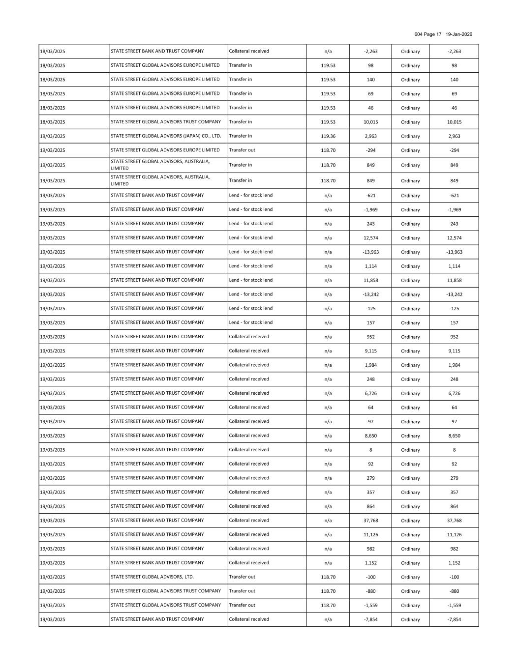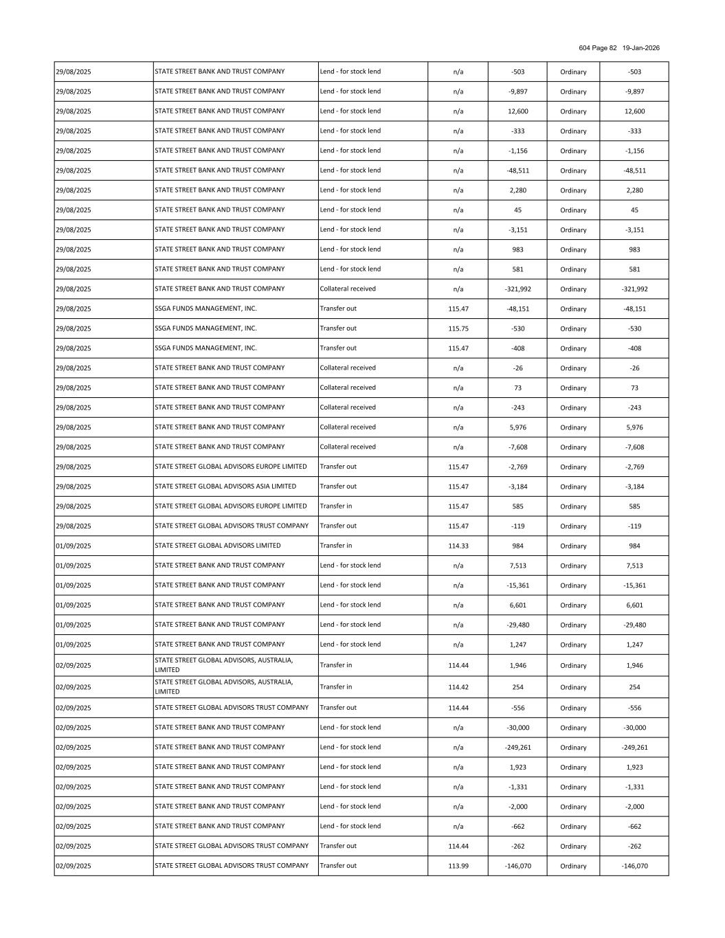 604 Page 100 19-Jan-2026 03/10/2025 n/a 173 Ordinary 173 03/10/2025 n/a 85 Ordinary 85 03/10/2025 n/a 1,058 Ordinary 1,058 03/10/2025 n/a 48,494 Ordinary 48,494 03/10/2025 n/a 13,438 Ordinary 13,438 03/10/2025 n/a 1,592 Ordinary 1,592 03/10/2025 n/a 1,729 Ordinary 1,729 03/10/2025 n/a 1,526 Ordinary 1,526 03/10/2025 n/a 10,835 Ordinary 10,835 03/10/2025 n/a 470 Ordinary 470 03/10/2025 n/a 1,602 Ordinary 1,602 03/10/2025 n/a 6,656 Ordinary 6,656 03/10/2025 n/a 116 Ordinary 116 03/10/2025 n/a 403 Ordinary 403 03/10/2025 n/a 12,508 Ordinary 12,508 03/10/2025 n/a 9 Ordinary 9 03/10/2025 n/a 176 Ordinary 176 03/10/2025 n/a -9,357 Ordinary -9,357 03/10/2025 n/a 9,357 Ordinary 9,357 03/10/2025 n/a -23,877 Ordinary -23,877 03/10/2025 n/a 23,877 Ordinary 23,877 03/10/2025 n/a -764 Ordinary -764 03/10/2025 n/a 764 Ordinary 764 03/10/2025 n/a -2,354 Ordinary -2,354 03/10/2025 n/a 2,354 Ordinary 2,354 03/10/2025 n/a -378 Ordinary -378 03/10/2025 n/a 378 Ordinary 378 03/10/2025 n/a -6,418 Ordinary -6,418 03/10/2025 n/a 6,418 Ordinary 6,418 03/10/2025 n/a -3,839 Ordinary -3,839 03/10/2025 n/a 4,060 Ordinary 4,060 03/10/2025 n/a -98 Ordinary -98 03/10/2025 n/a 98 Ordinary 98 03/10/2025 n/a -3,379 Ordinary -3,379 03/10/2025 n/a 3,379 Ordinary 3,379 03/10/2025 n/a -3,332 Ordinary -3,332 03/10/2025 n/a 3,332 Ordinary 3,332 03/10/2025 n/a -40,277 Ordinary -40,277 03/10/2025 n/a 40,277 Ordinary 40,277 03/10/2025 n/a -7,980 Ordinary -7,980 03/10/2025 n/a 7,844 Ordinary 7,844 03/10/2025 n/a -1,534 Ordinary -1,534 STATE STREET BANK AND TRUST COMPANY STATE STREET BANK AND TRUST COMPANY Collateral received Collateral received Collateral received Collateral received Collateral received STATE STREET BANK AND TRUST COMPANY STATE STREET BANK AND TRUST COMPANY Collateral received Collateral received Collateral received Collateral received Collateral received STATE STREET BANK AND TRUST COMPANY STATE STREET BANK AND TRUST COMPANY STATE STREET BANK AND TRUST COMPANY STATE STREET BANK AND TRUST COMPANY Collateral received Collateral received STATE STREET BANK AND TRUST COMPANY STATE STREET BANK AND TRUST COMPANY STATE STREET BANK AND TRUST COMPANY STATE STREET BANK AND TRUST COMPANY Collateral received STATE STREET BANK AND TRUST COMPANY Collateral received Collateral received STATE STREET BANK AND TRUST COMPANY STATE STREET BANK AND TRUST COMPANY Collateral received Collateral received Collateral received Collateral received Collateral received STATE STREET BANK AND TRUST COMPANY Collateral received Collateral received STATE STREET BANK AND TRUST COMPANY Collateral received STATE STREET BANK AND TRUST COMPANY STATE STREET BANK AND TRUST COMPANY Collateral received STATE STREET BANK AND TRUST COMPANY STATE STREET BANK AND TRUST COMPANY Collateral received STATE STREET BANK AND TRUST COMPANY STATE STREET BANK AND TRUST COMPANY STATE STREET BANK AND TRUST COMPANY Borrow - for stock borrows Collateral received STATE STREET BANK AND TRUST COMPANY STATE STREET BANK AND TRUST COMPANY STATE STREET BANK AND TRUST COMPANY Collateral received STATE STREET BANK AND TRUST COMPANY STATE STREET BANK AND TRUST COMPANY Collateral received STATE STREET BANK AND TRUST COMPANY Collateral received Collateral received Collateral received Collateral received Borrow - for stock borrows STATE STREET BANK AND TRUST COMPANY Collateral received STATE STREET BANK AND TRUST COMPANY STATE STREET BANK AND TRUST COMPANY STATE STREET BANK AND TRUST COMPANY Collateral received Borrow - for stock borrows STATE STREET BANK AND TRUST COMPANY Collateral received STATE STREET BANK AND TRUST COMPANY Borrow - for stock borrows STATE STREET BANK AND TRUST COMPANY STATE STREET BANK AND TRUST COMPANY STATE STREET BANK AND TRUST COMPANY Collateral received STATE STREET BANK AND TRUST COMPANY STATE STREET BANK AND TRUST COMPANY STATE STREET BANK AND TRUST COMPANY Collateral received Collateral received