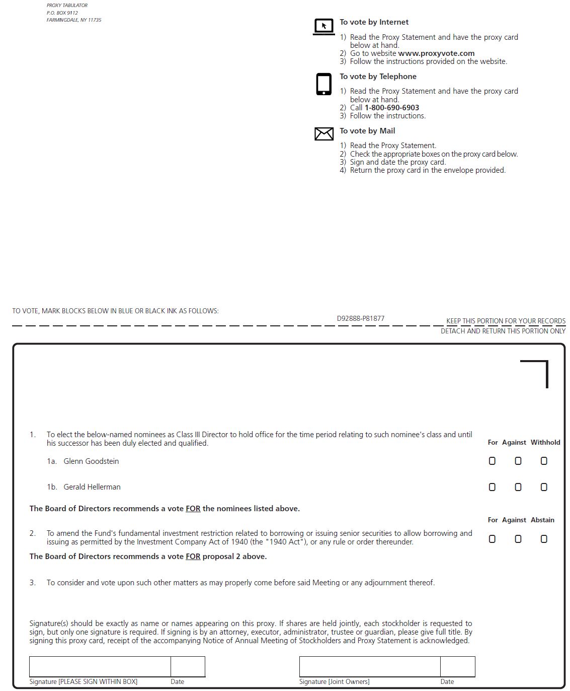 Please proved a copy of the proxy card. Please confirm that the proxy card will be included in any future preliminary proxy statement filings by the Fund.