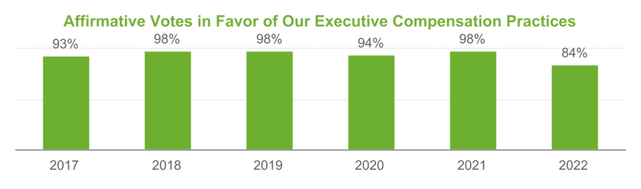 The Committee reviews and evaluates long-term incentive awards periodically to ensure that they continue to meet our objectives and may be modified, discontinued or replaced based on our changing objectives and requirements. The Committee's most recently completed review, which occurred in May 2022, carefully considered the Meridian study, trends of our peer companies, compensation objectives of retention and value creation, and the objective of conserving shares available for grant under our equity incentive plan and reducing earnings dilution.