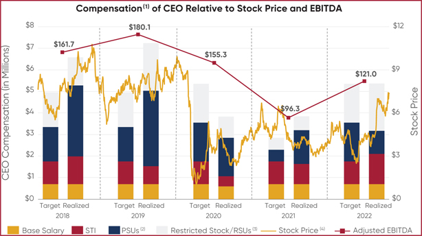 | (2) | Represents the number of shares that would have been issued in respect of the 1,888,024 PSUs granted pursuant to the 2005 Long Term Incentive Plan in 2022, 2021 and 2020 that were outstanding on December 31, 2022, based on the stock price on that date and assuming vesting occurred on that date at a 77.25% multiple for 2020, a 117% multiple for 2021 and a 200% multiple for 2022. The PSUs granted in 2021 and 2022 are payable in either cash or shares upon vesting at the discretion of the Compensation Committee. As of December 31, 2022, the total number of full value awards outstanding under the 2005 Long Term Incentive Plan was 2,275,652 consisting of 387,628 restricted shares and the 1,888,024 PSUs. Subsequent to December 31, 2022, 369,938 PSUs vested at a 77.25% multiple and were paid in 285,778 shares of our common stock. |
