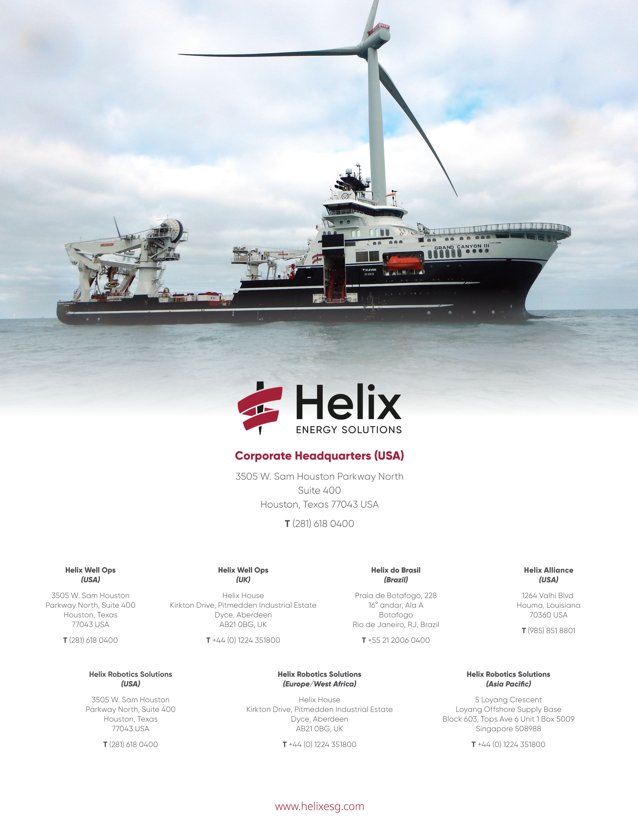 Place Helix Energy Solutions Group, Inc.’s corporate office, 3505 West Sam Houston Parkway North, Suite 400, Houston, TX 77043 |